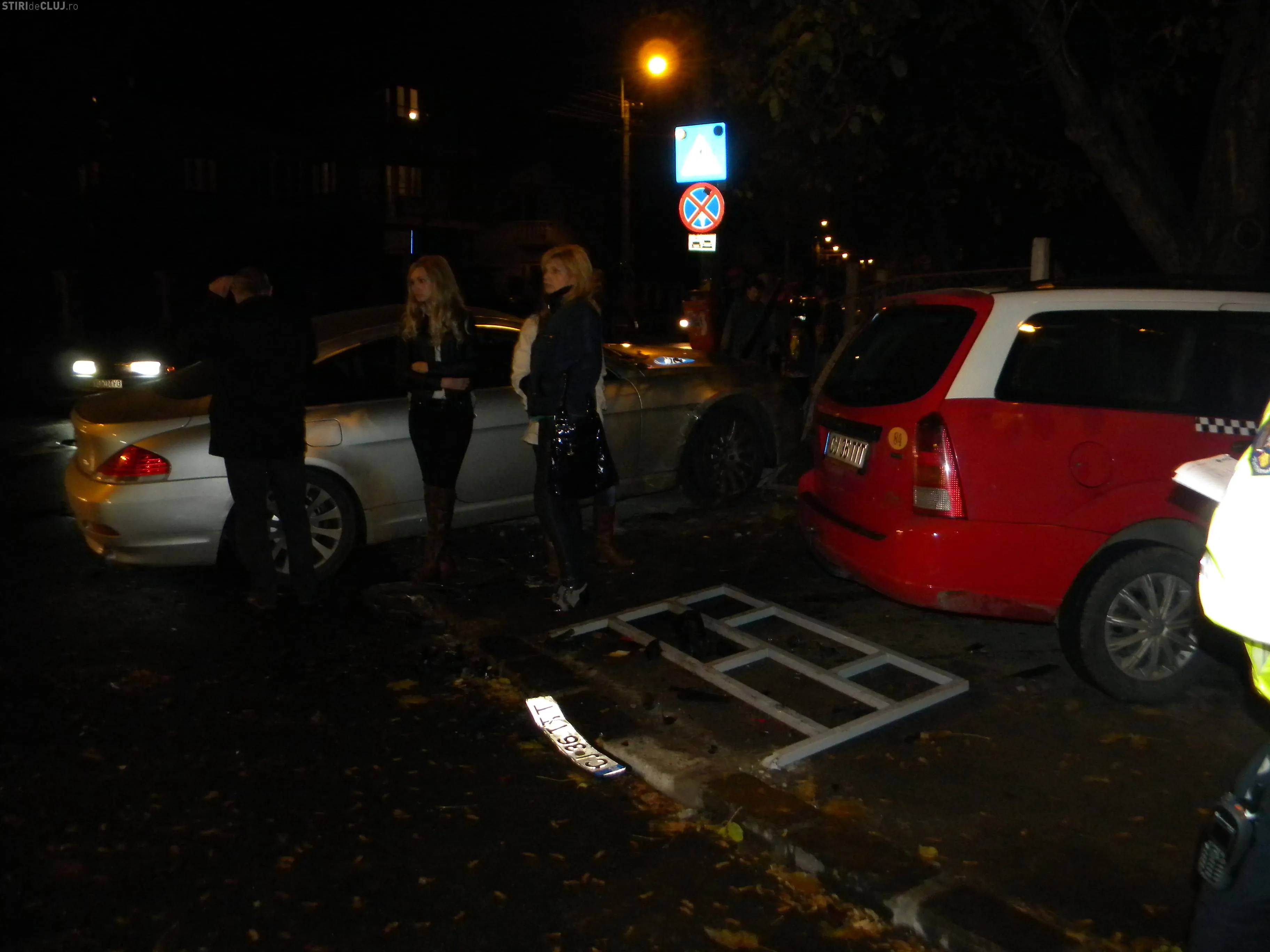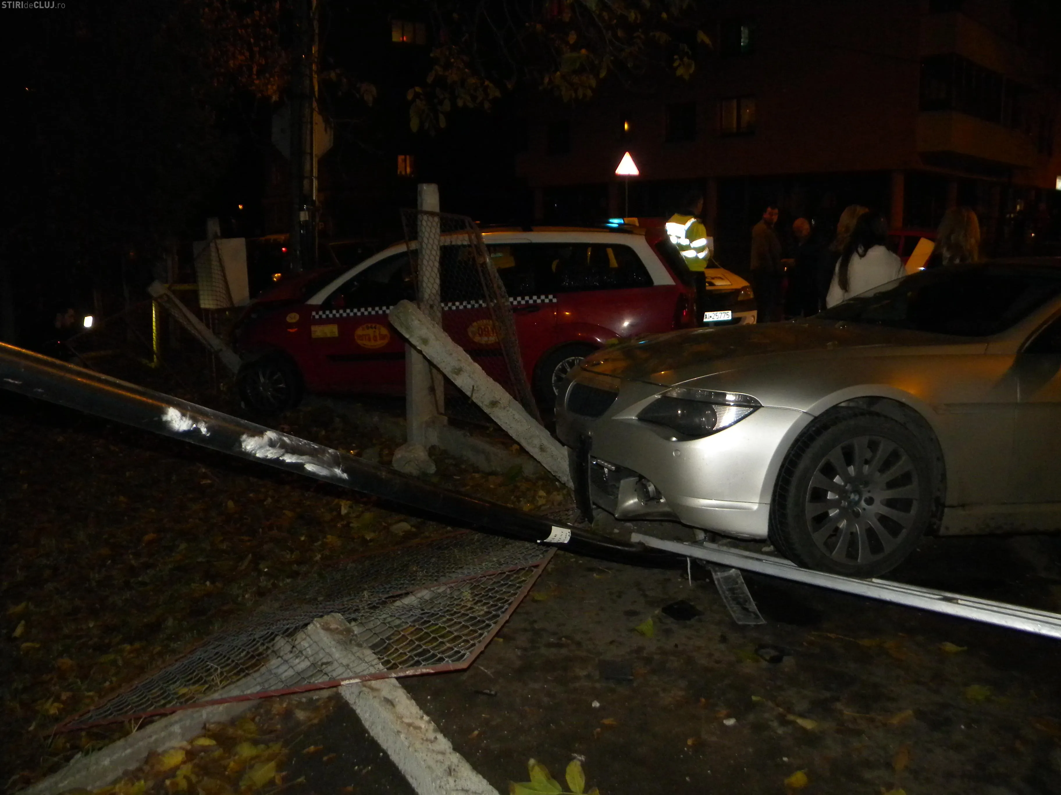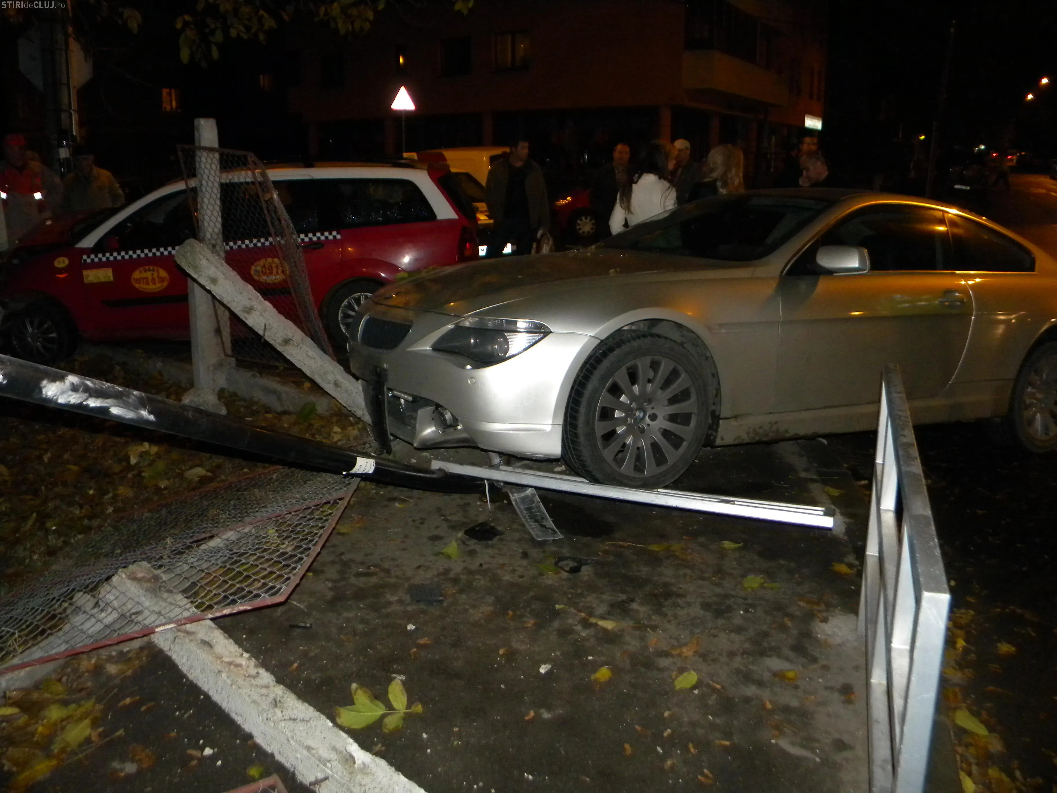 Accident pe strada Albini! Un taximetru și un BMW de lux au demolat gardul unei grădinițe - VIDEO