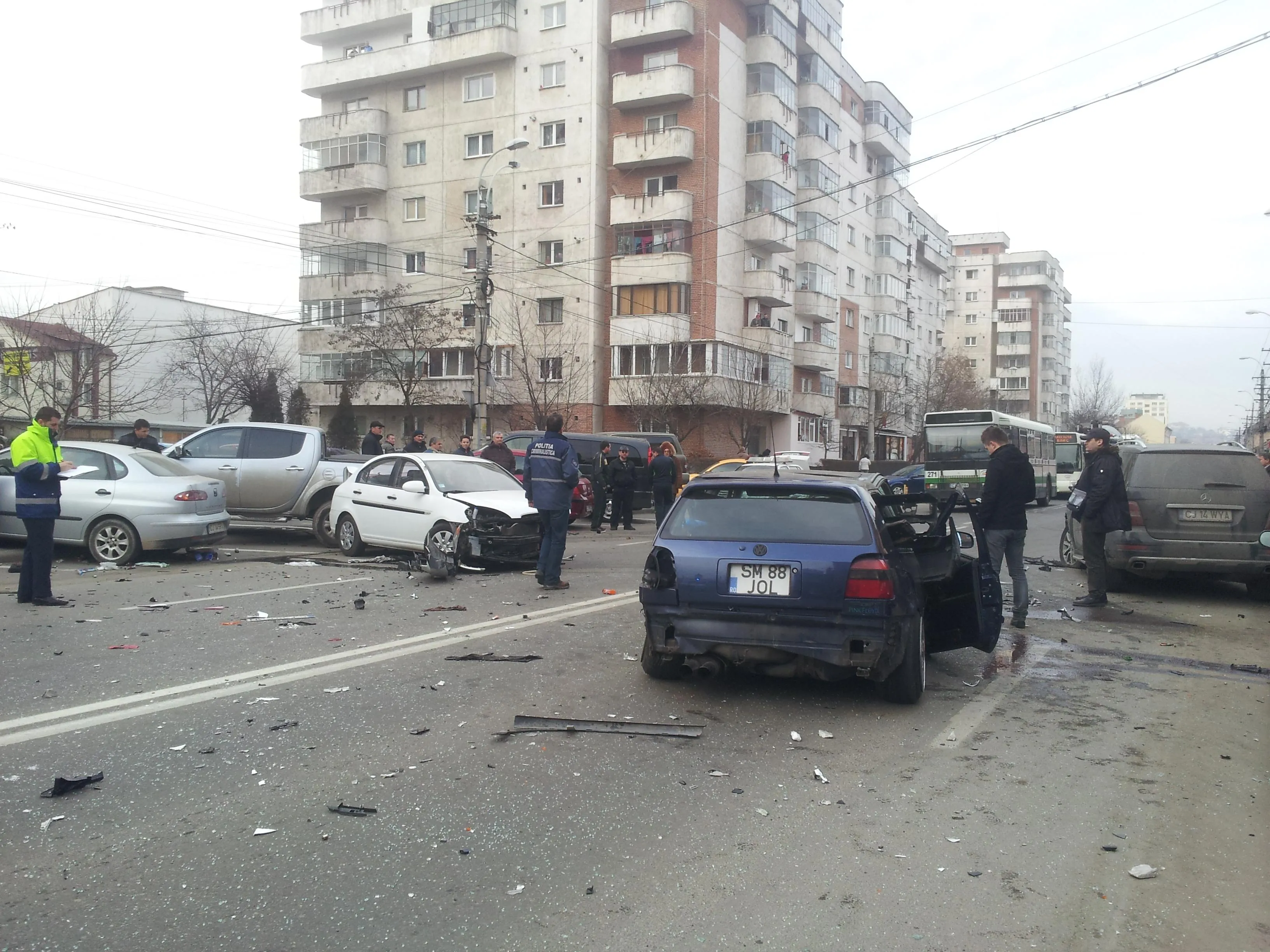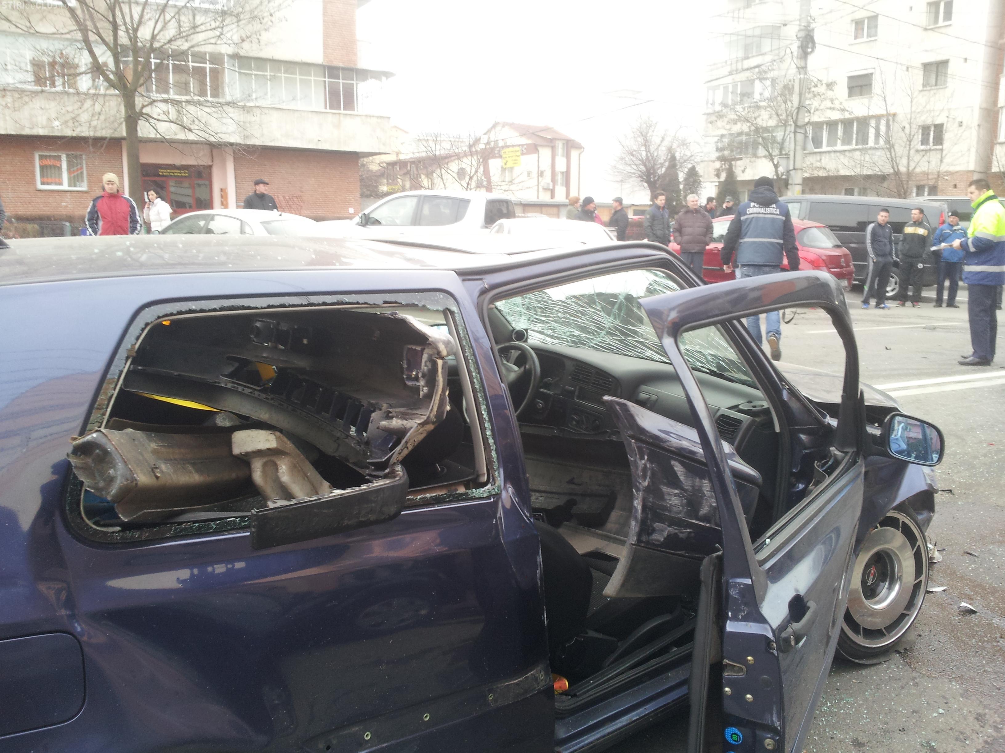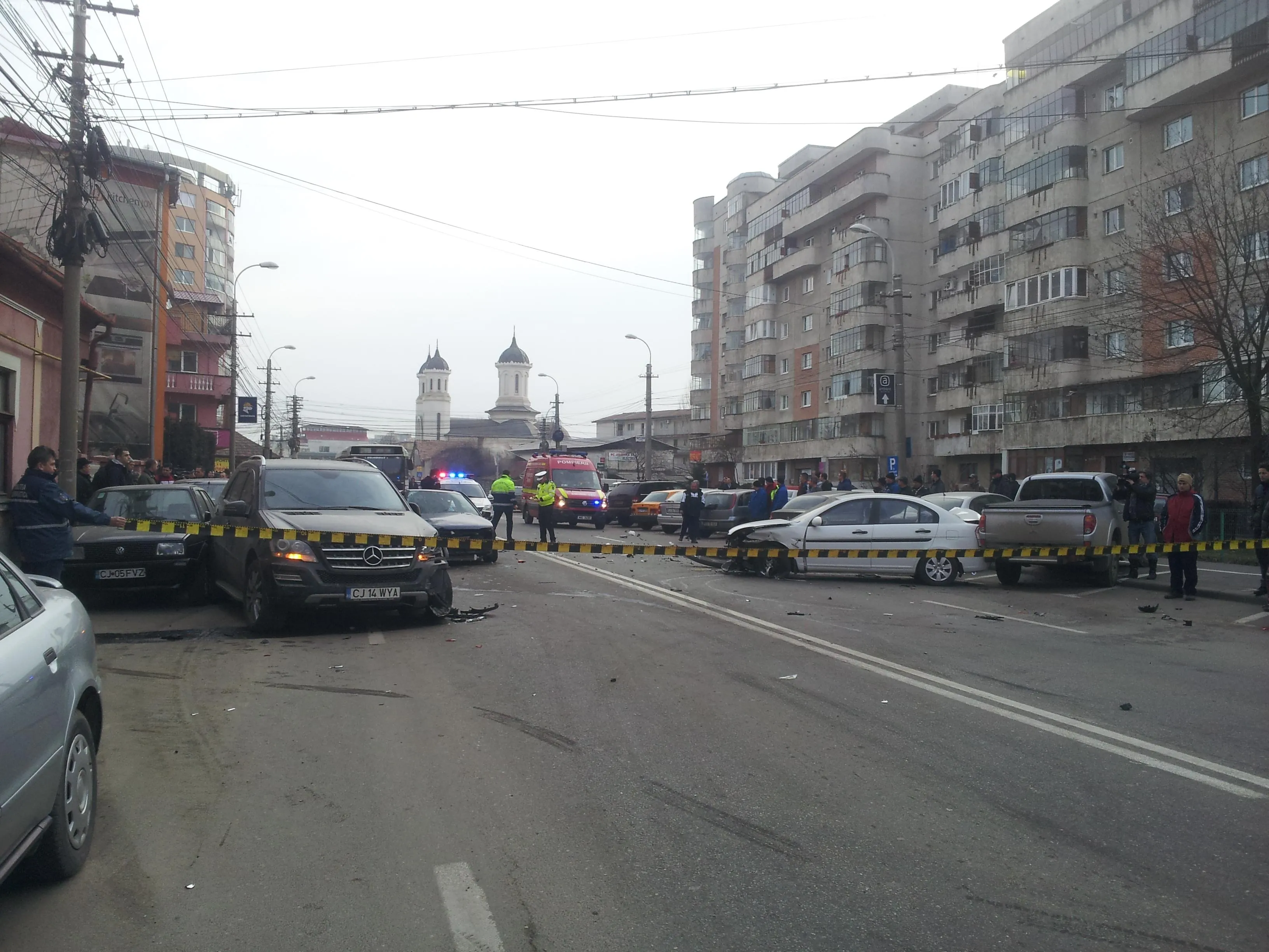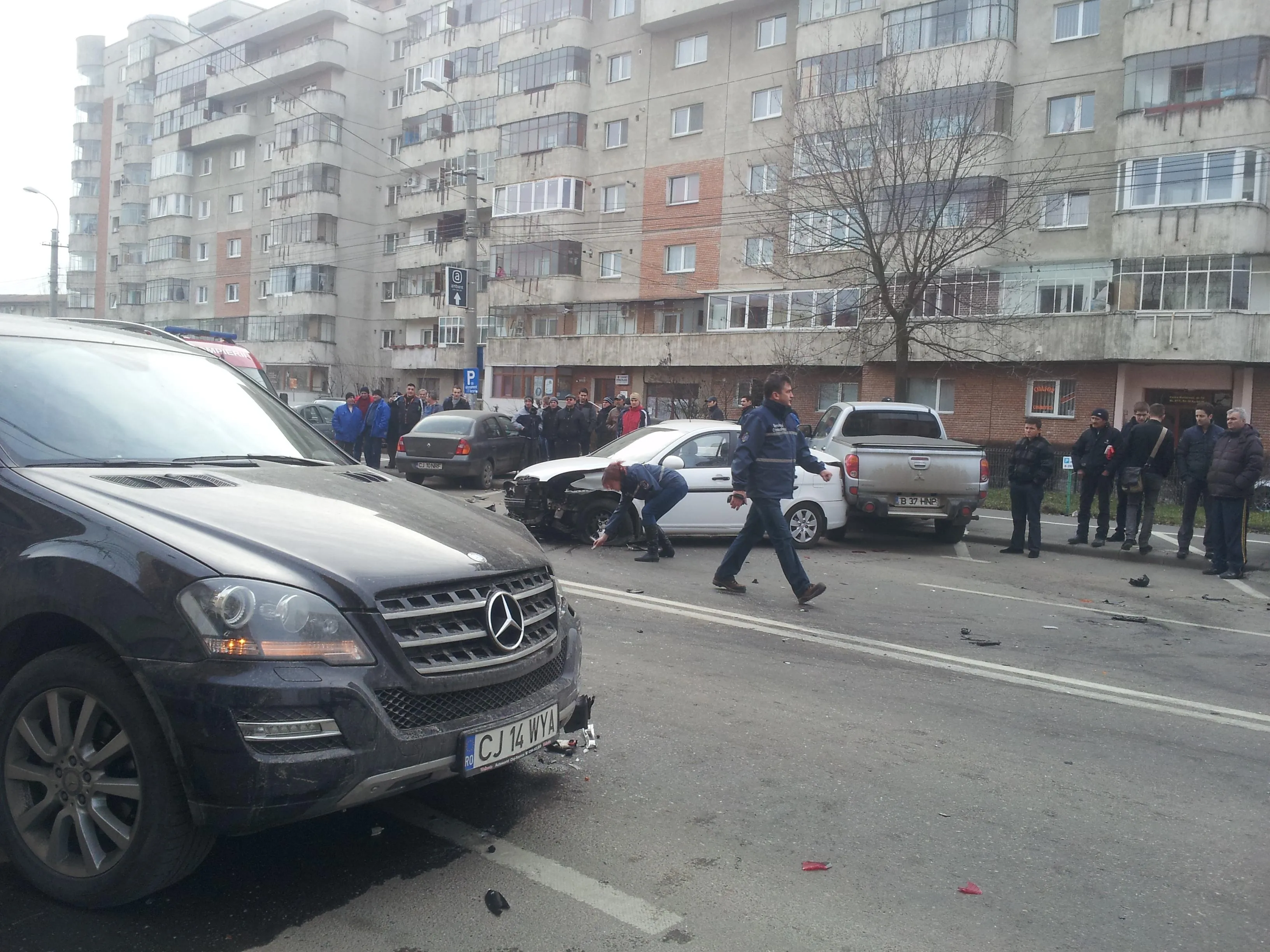 Un VW care circula dinspre centru spre Marasti nu a mai putut să frâneze si sa evite coliziunea , a intrat direct în autoturismul Hyundai, proiectându-l într-un Mitsubishi, care era parcat. Dupa impact, VW a lovit si un Mercedes care circula din sens opus si pe care l-a proiectat intr-un alt VW parcat pe cealalta parte a drumului.
