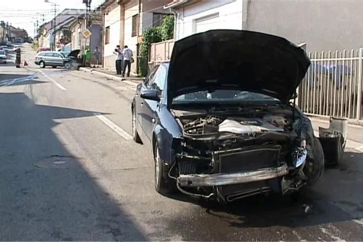 Accidentul s-a produs in aceasta dimineata in jurul orei 9,50 la intersectia strazii Carpati cu Fierului. O soferita din Hunedoara aflata la volanul unui Audi venea pe strada Fierului dinspre centru. In momentul in care a ajuns in intersectia cu strada Carpati nu a oprit, desi avea Stop si a intrat in intersectie fara sa se asigure.