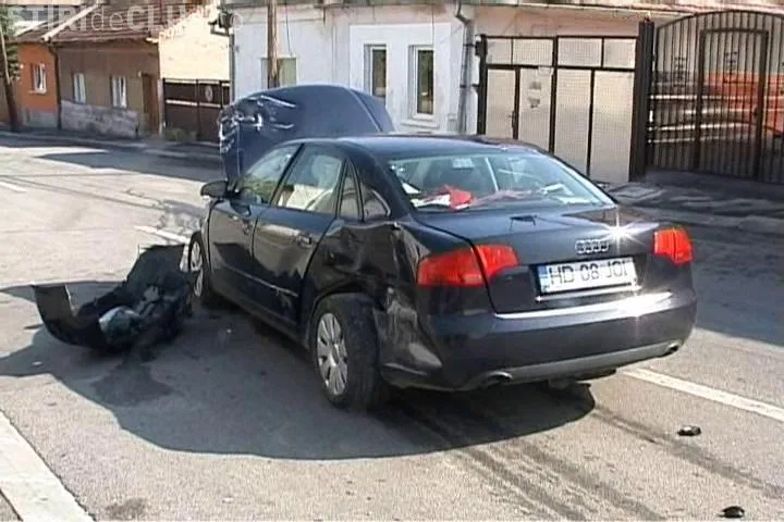 Grav accident de circulatie pe strada Carpati, din Cluj! Un cadru al armatei a fost ranit, dupa ce o soferita nu a cedat trecerea! VIDEO SI FOTO
