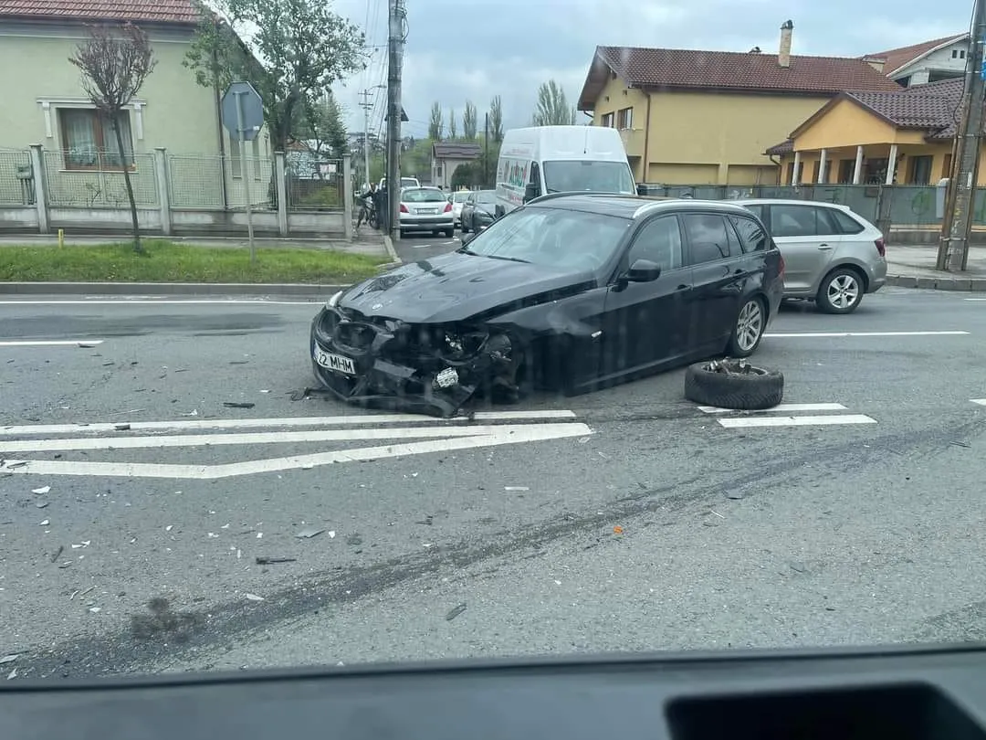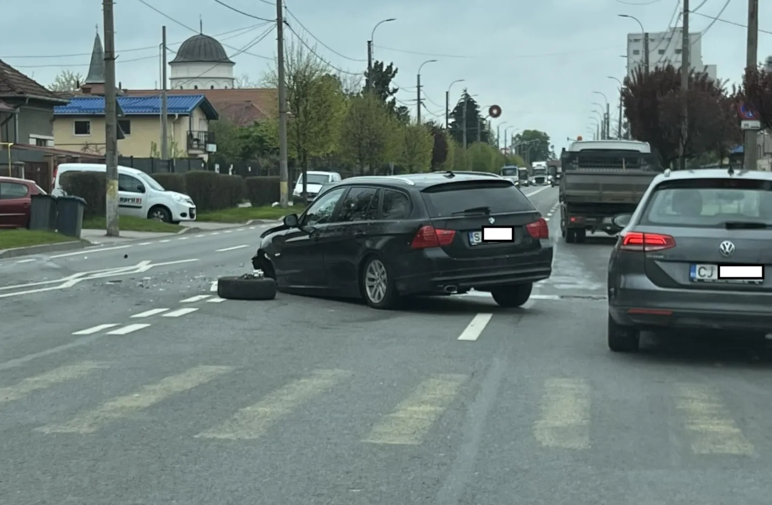 Accident pe strada Corneliu Coposu. A sărit roata BMW -ului în urma impactului - FOTO