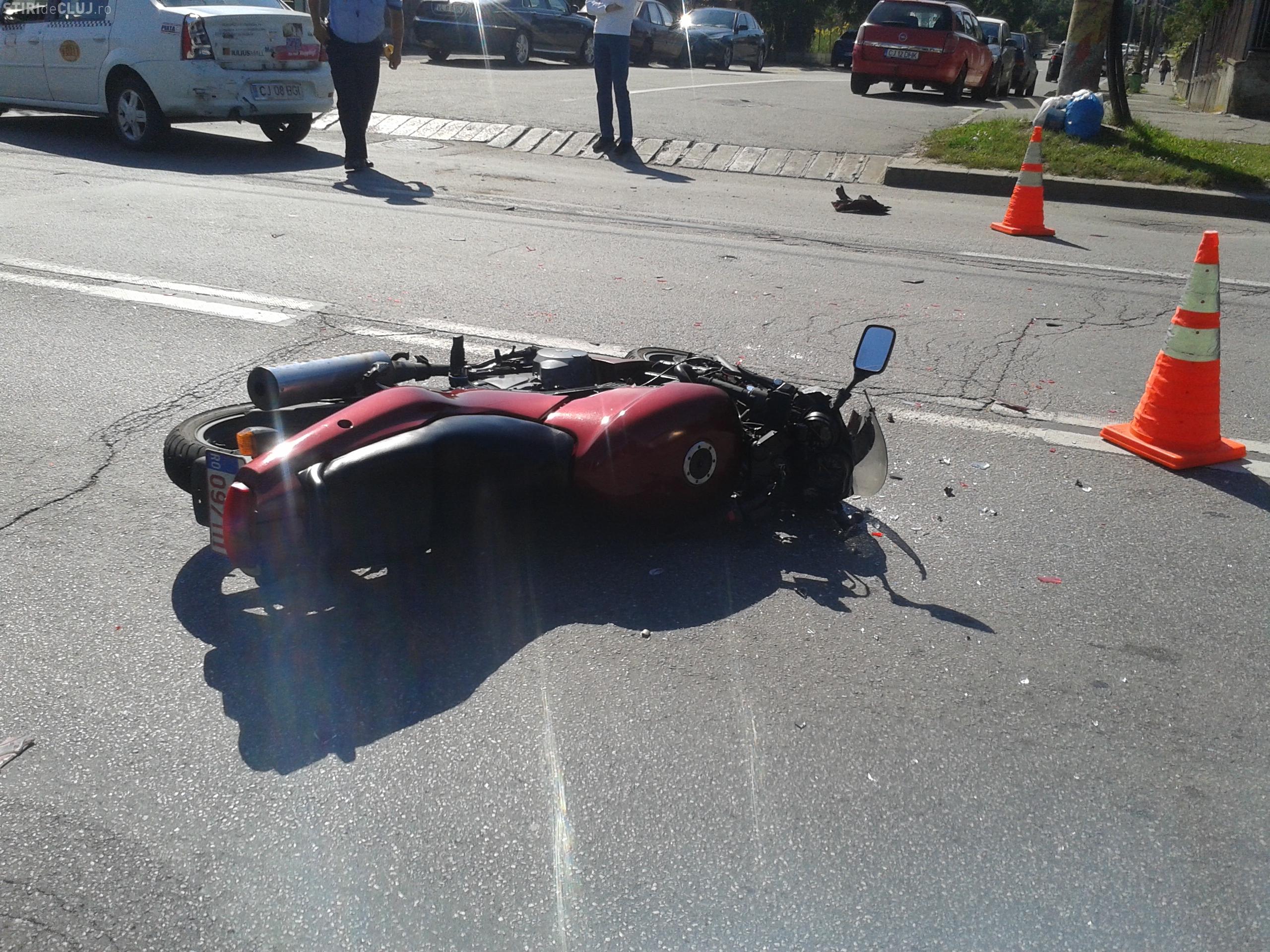Accident pe strada Corneliu Coposu! Un taximetrist i-a tăiat calea unui motociclist - FOTO