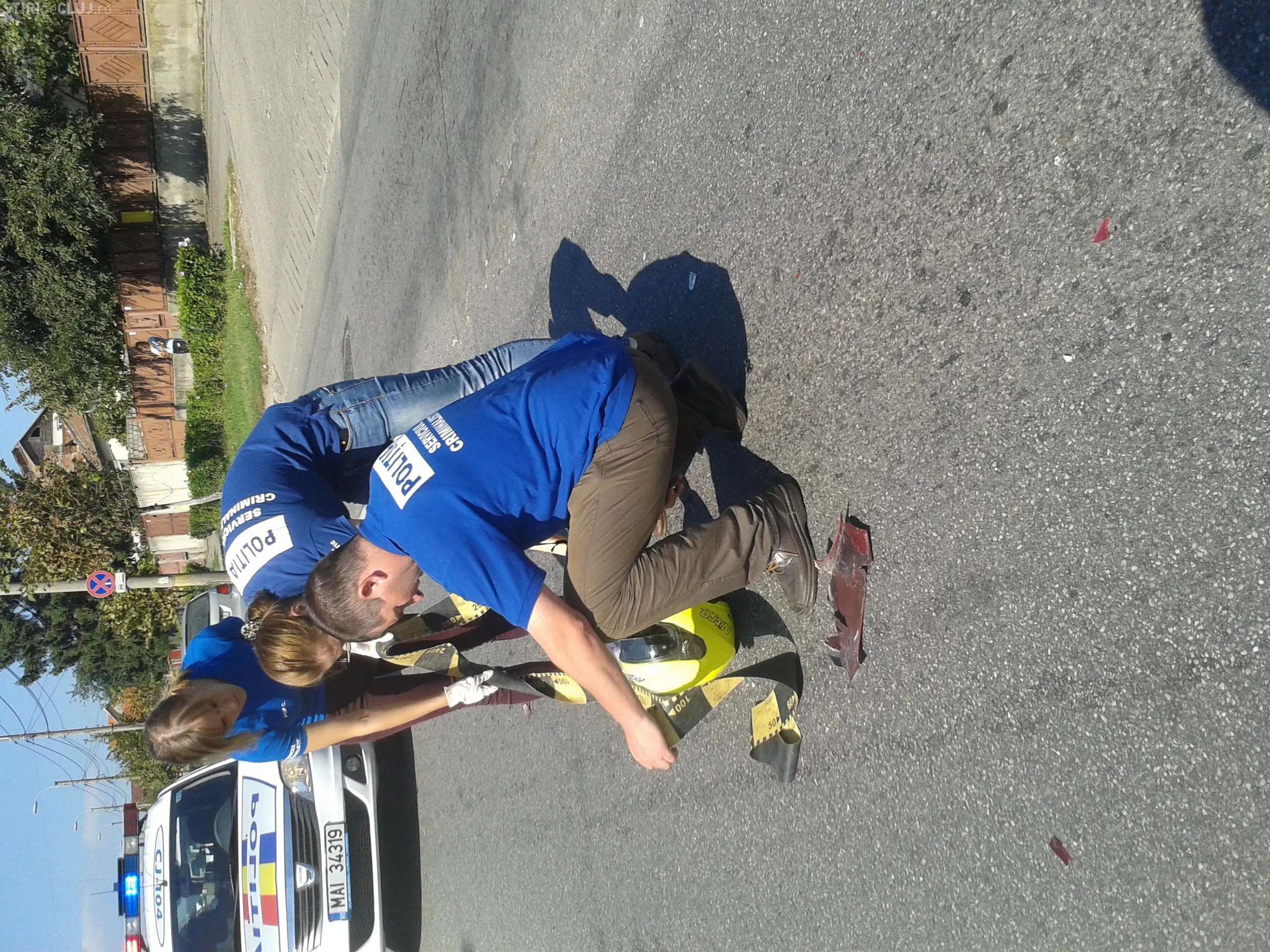 ”În data de 19.08.2014, ora 10:14, pe strada Corneliu Coposu din municipiul Cluj-Napoca - intersecţie cu strada Poienarilor, s-a produs un accident rutier soldat cu rănirea uşoară a unei persoane şi avarierea a două autovehicule.