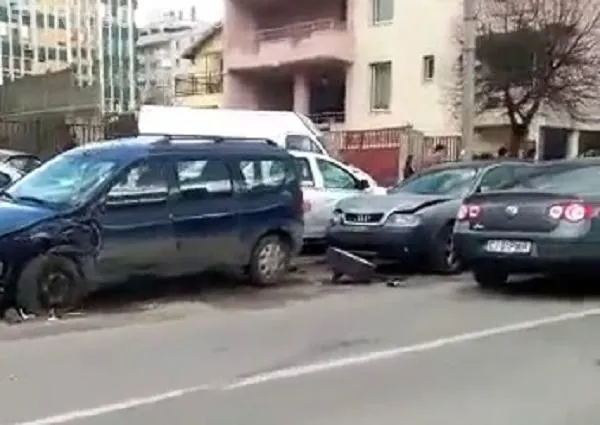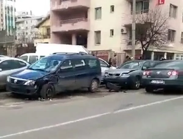 În urma impactului, autoturismul aflat în depășire a fost proiectat în alte trei autoturisme parcate.