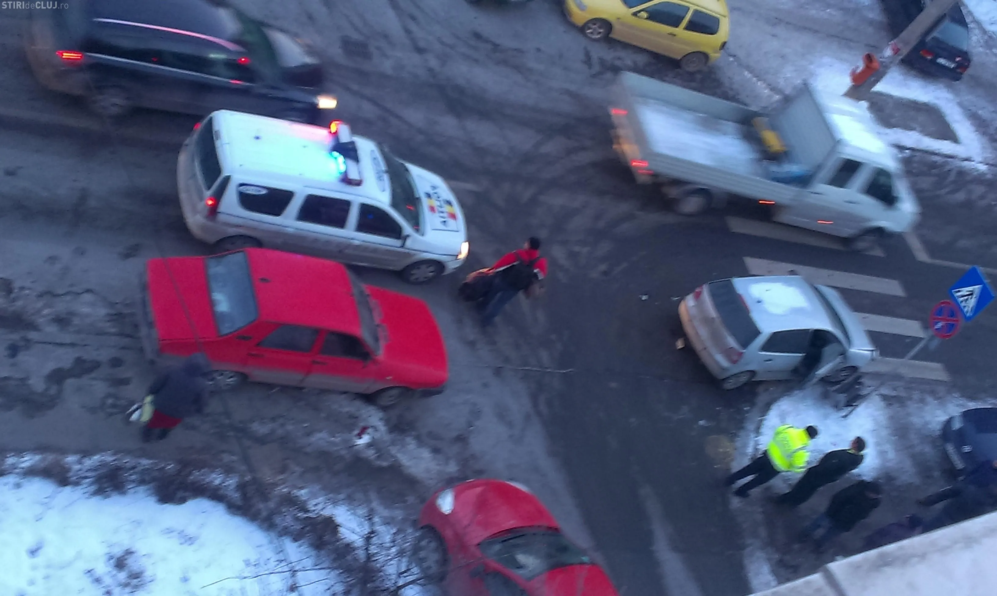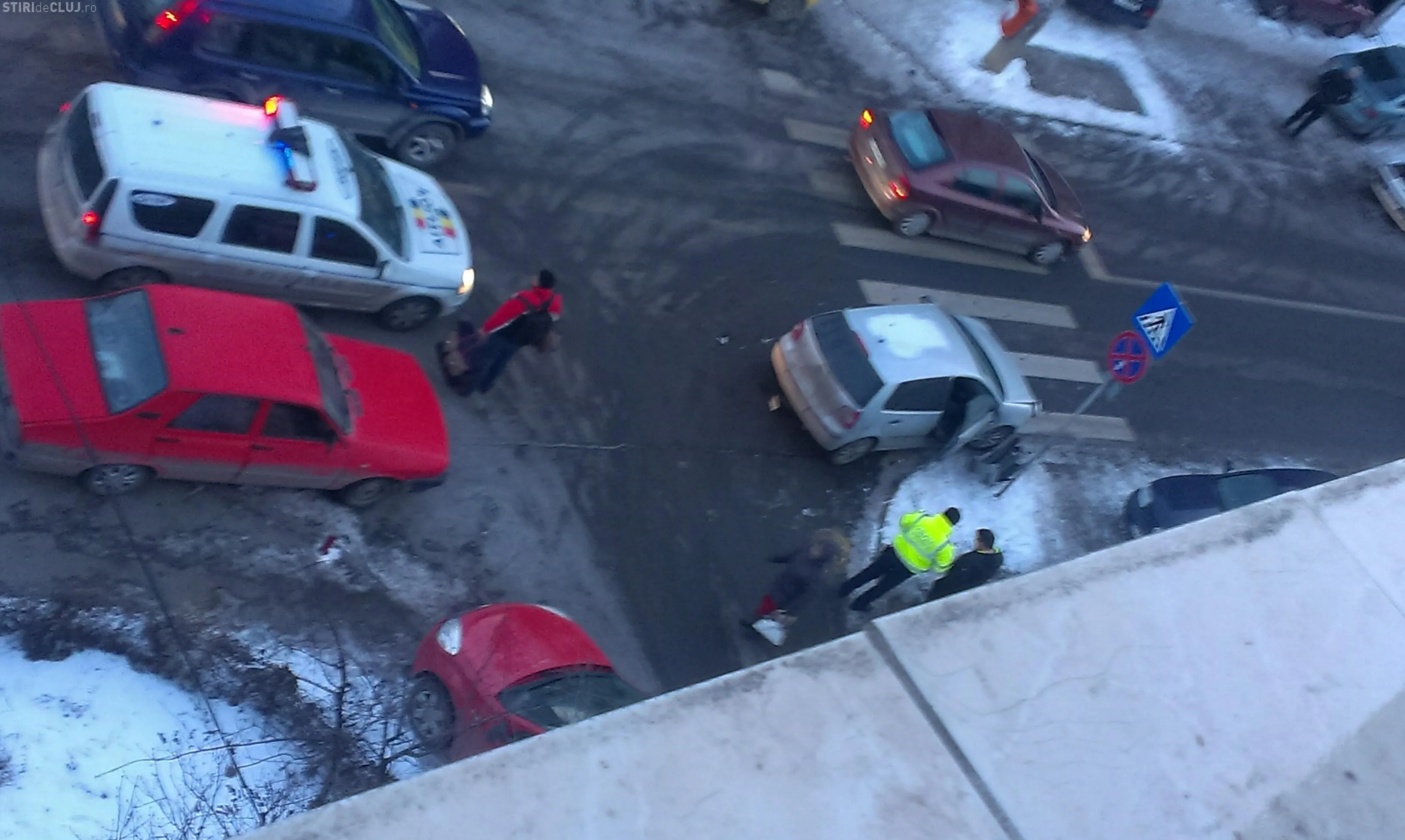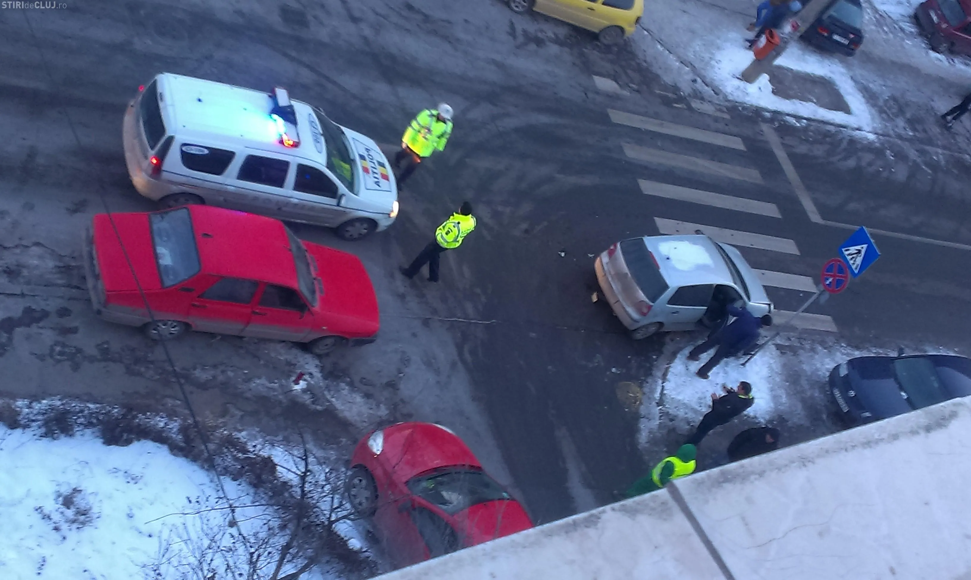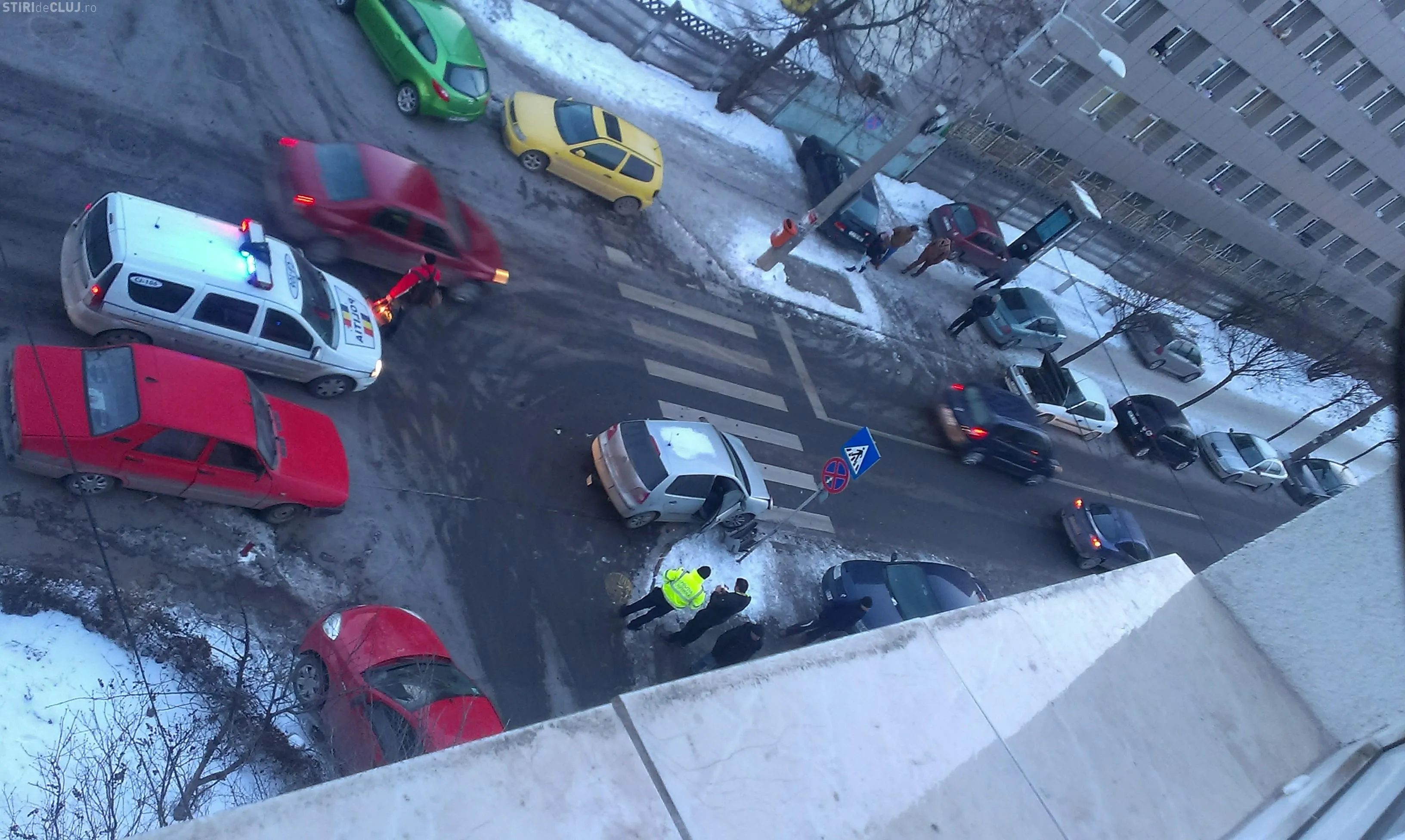 ”Accidentul s-a soldat din fericire doar cu pagube materiale, din cauza parcarilor aiurea care obstructioneaza vizibilitatea.