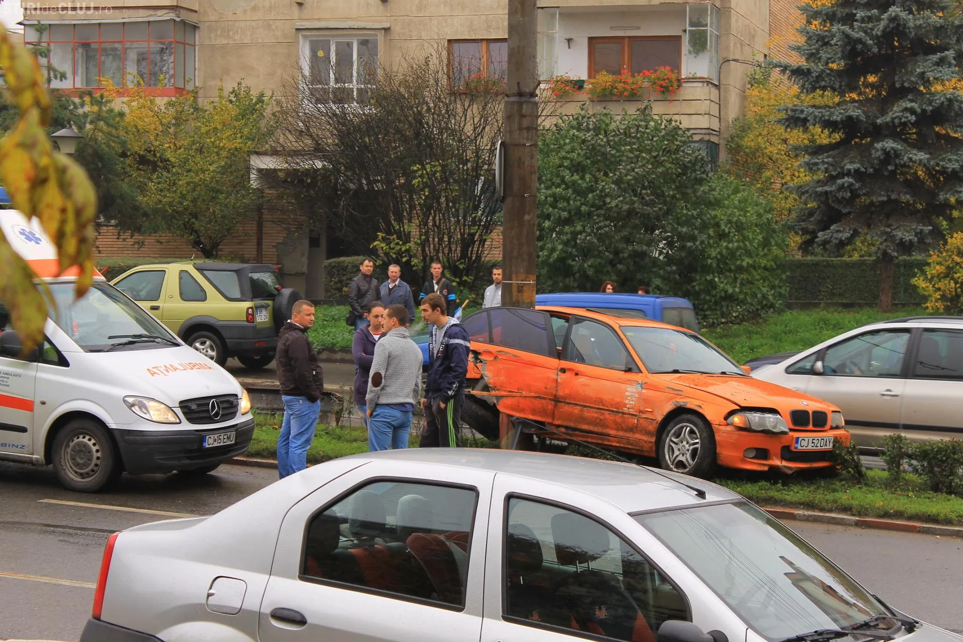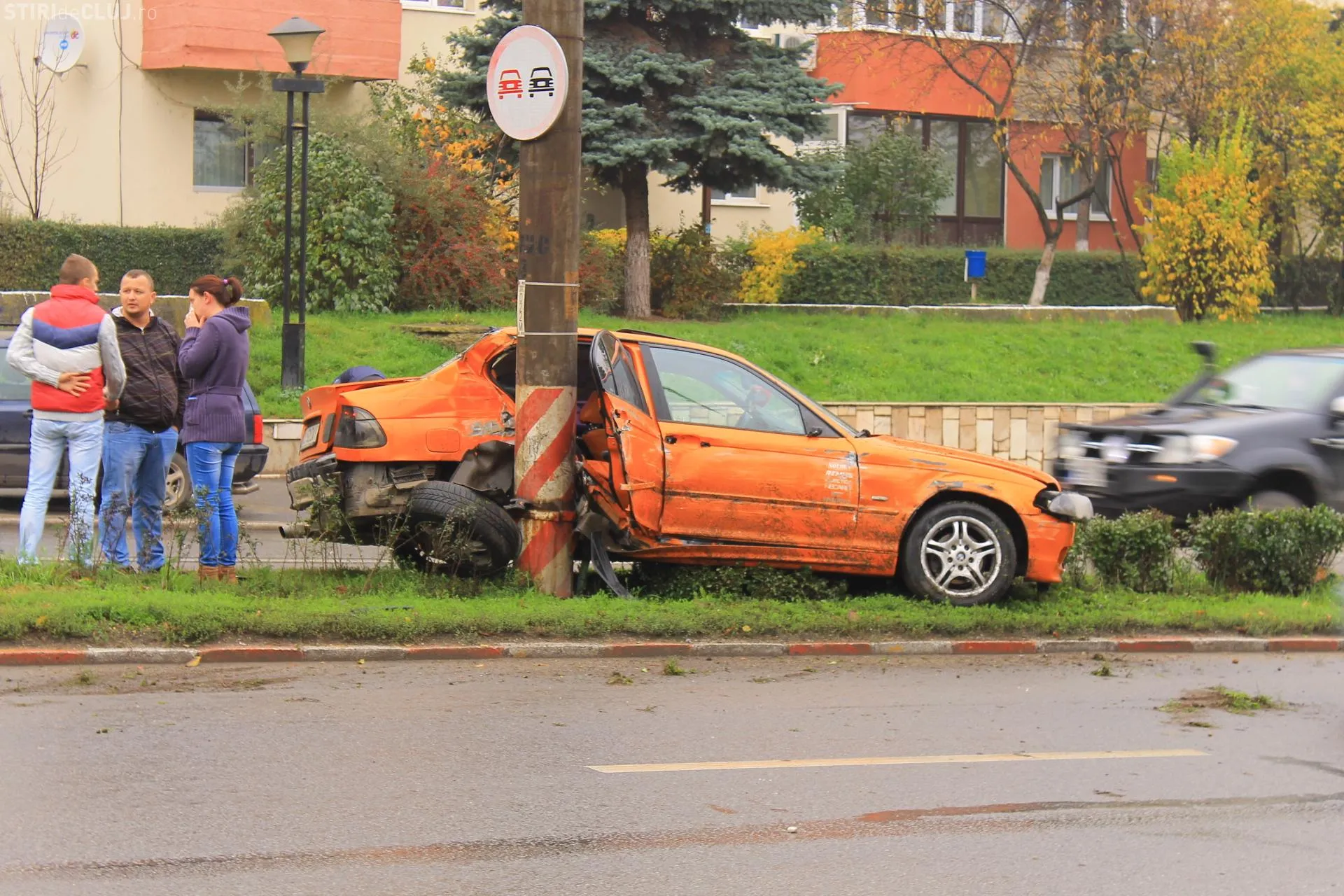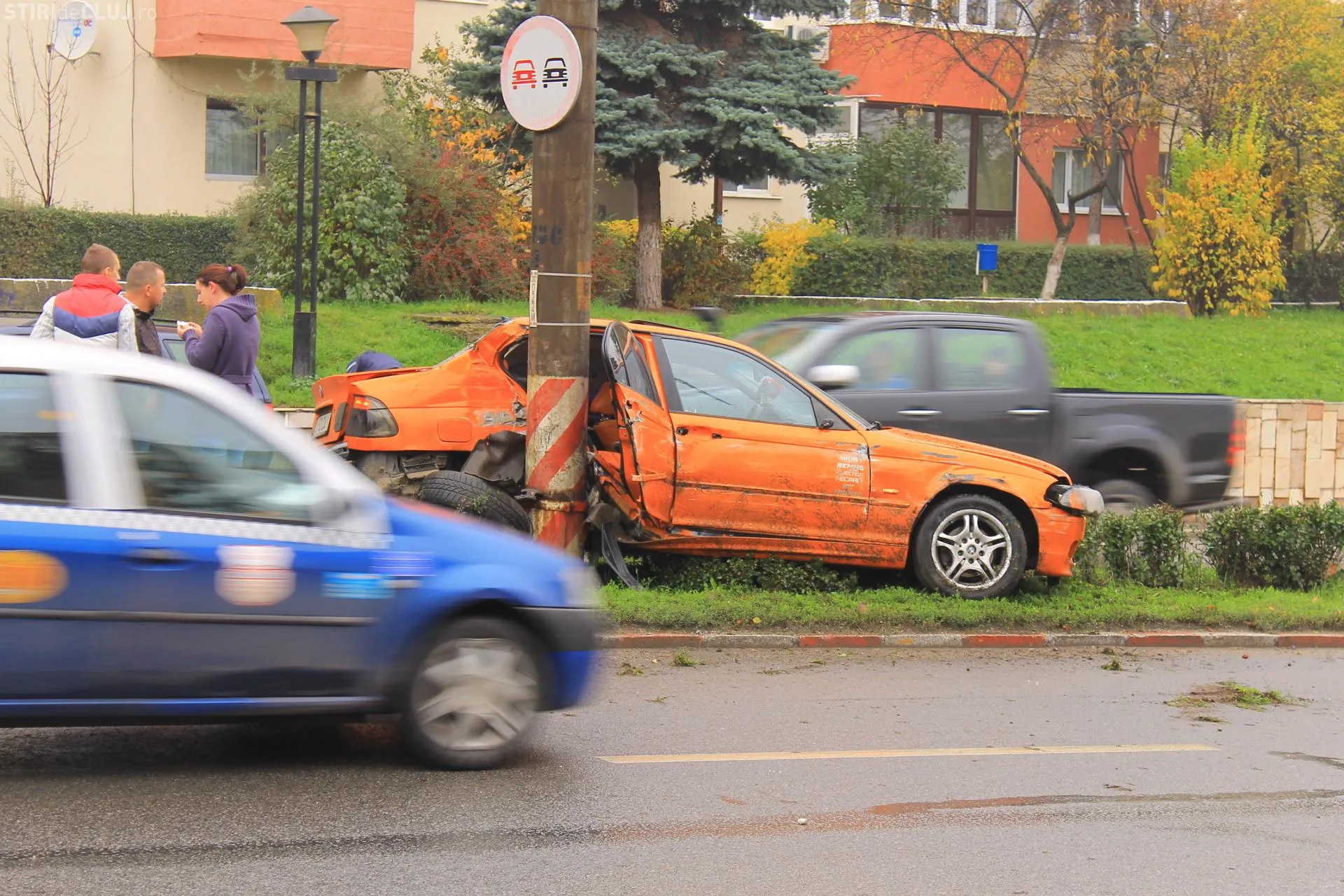 Accident pe strada Fabricii! Un BMW s-a lovit de un STÂLP - VIDEO și FOTO