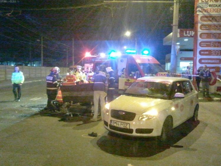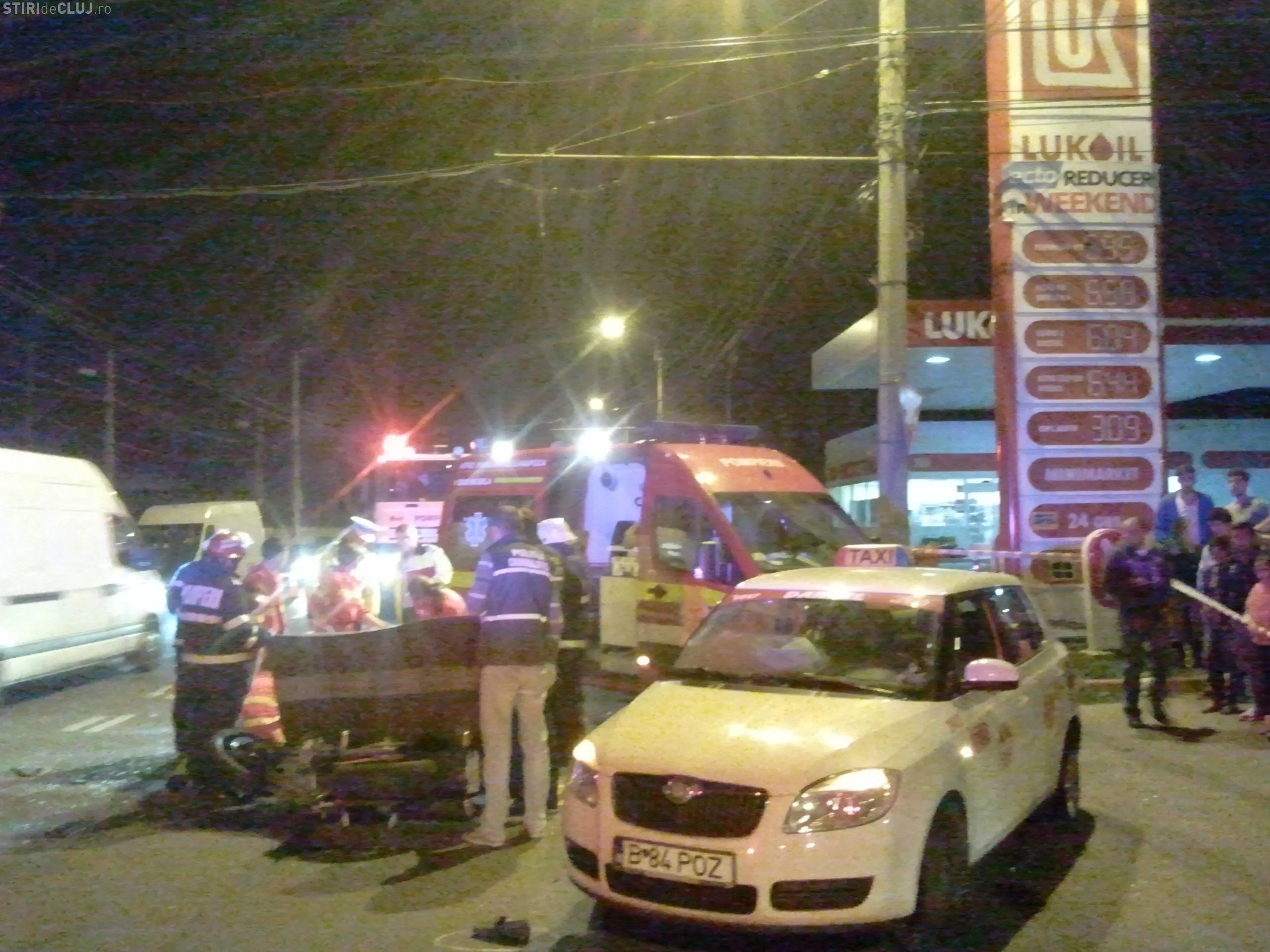 Taximetristul, un pasager și fiica acestuia, ultimii doi aflându-se în taximetru, au fost duși la UPU Cluj.