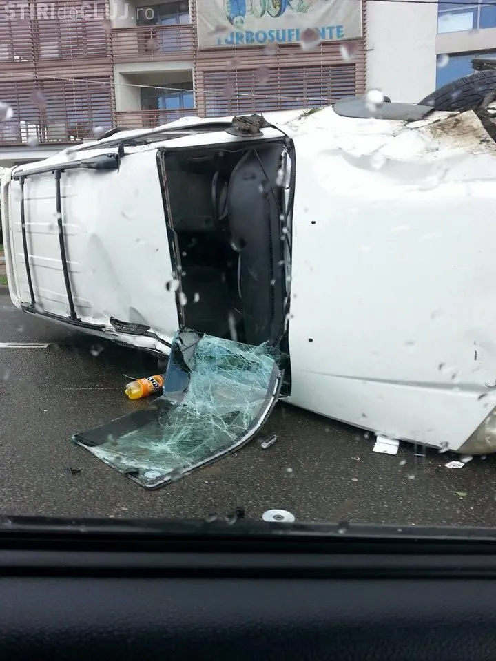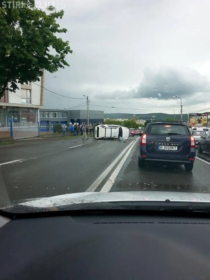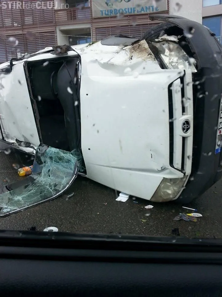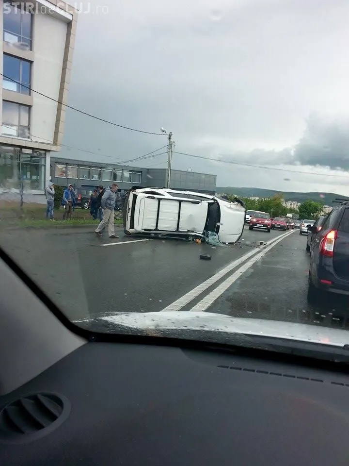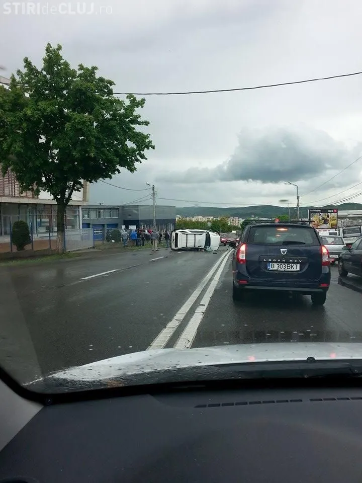Accident pe strada Frunzișului (varianta Zorilor - Mănăștur) - O mașină s-a răsturnat - FOTO