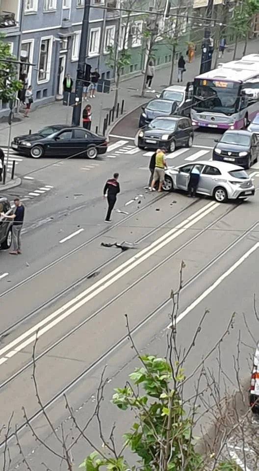 Două autoturisme s-au ciocnit pe strada Horea, din Cluj-Napoca, luni, înn jurul orei 12.30.