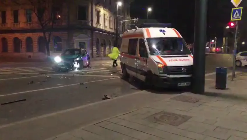 O ambulanță a fost lovită, duminică seara, de un șofer pe strada Horea, din Cluj-Napoca.