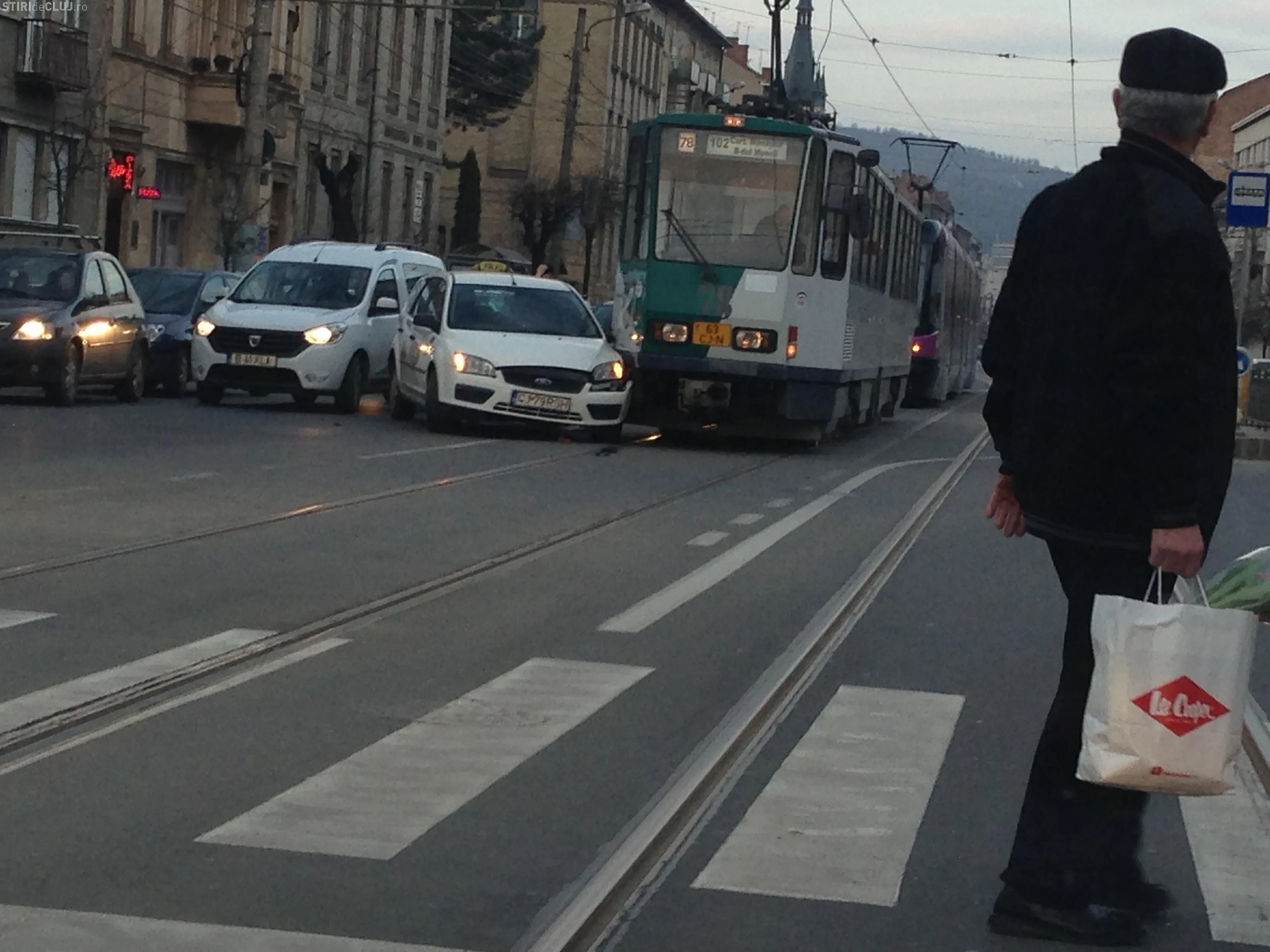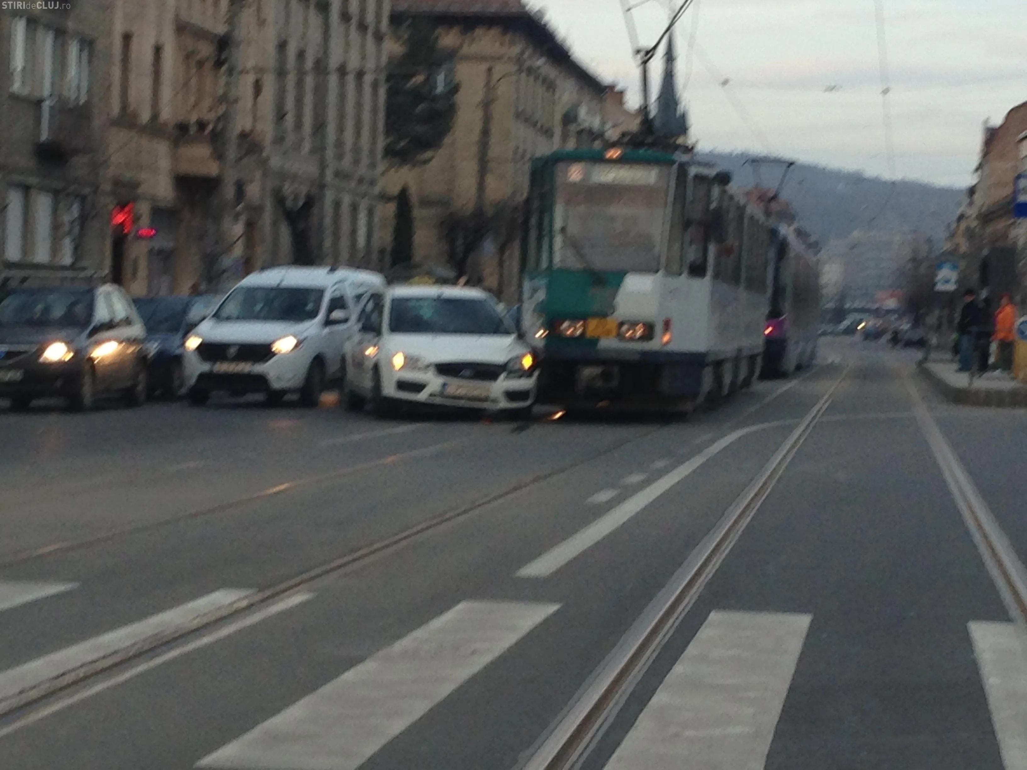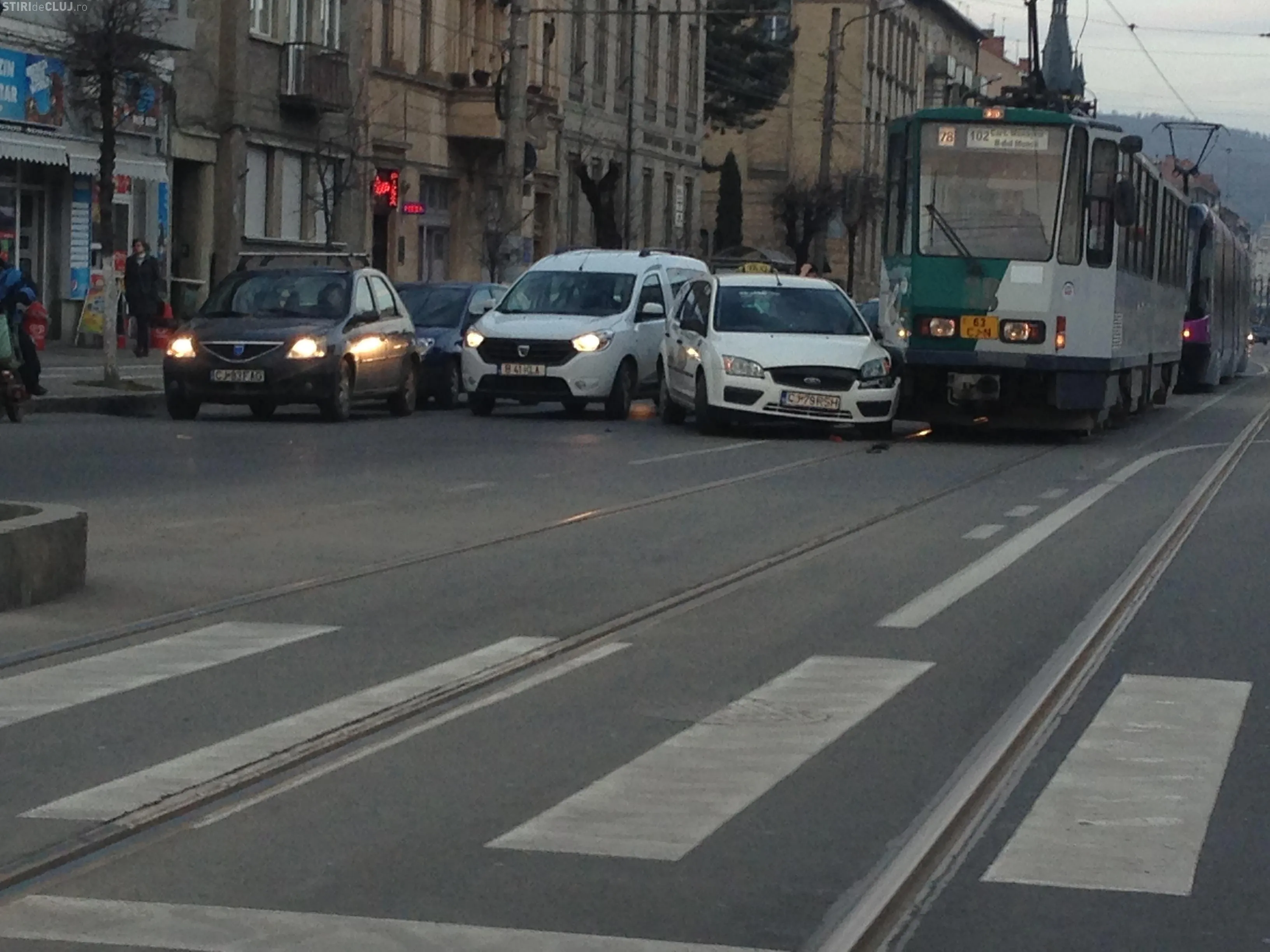 Accident pe strada Horea! Un taximetrist a intrat cu mașina în fața tramvaiului FOTO