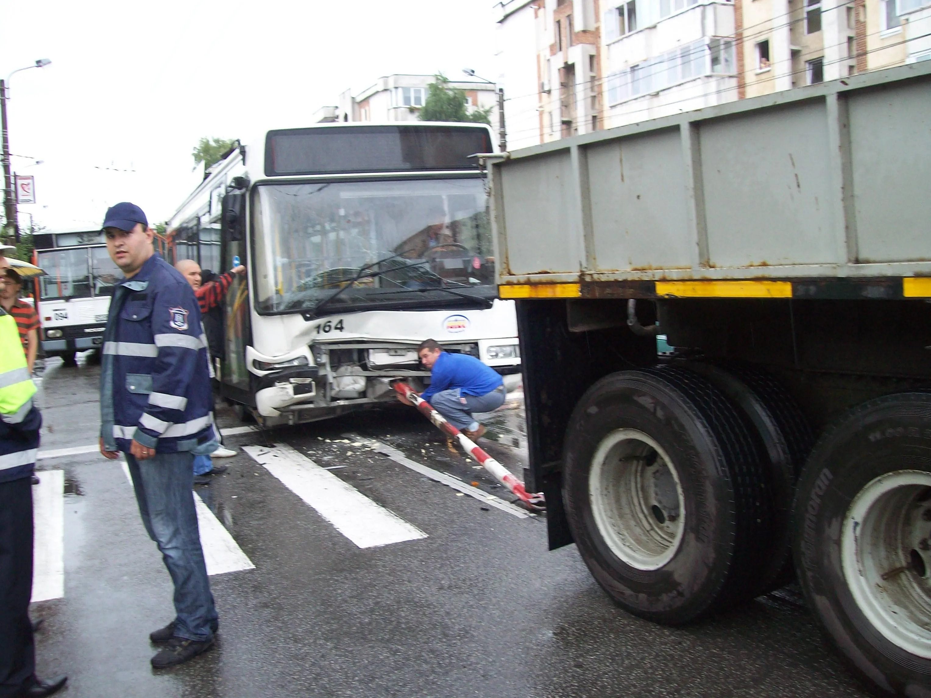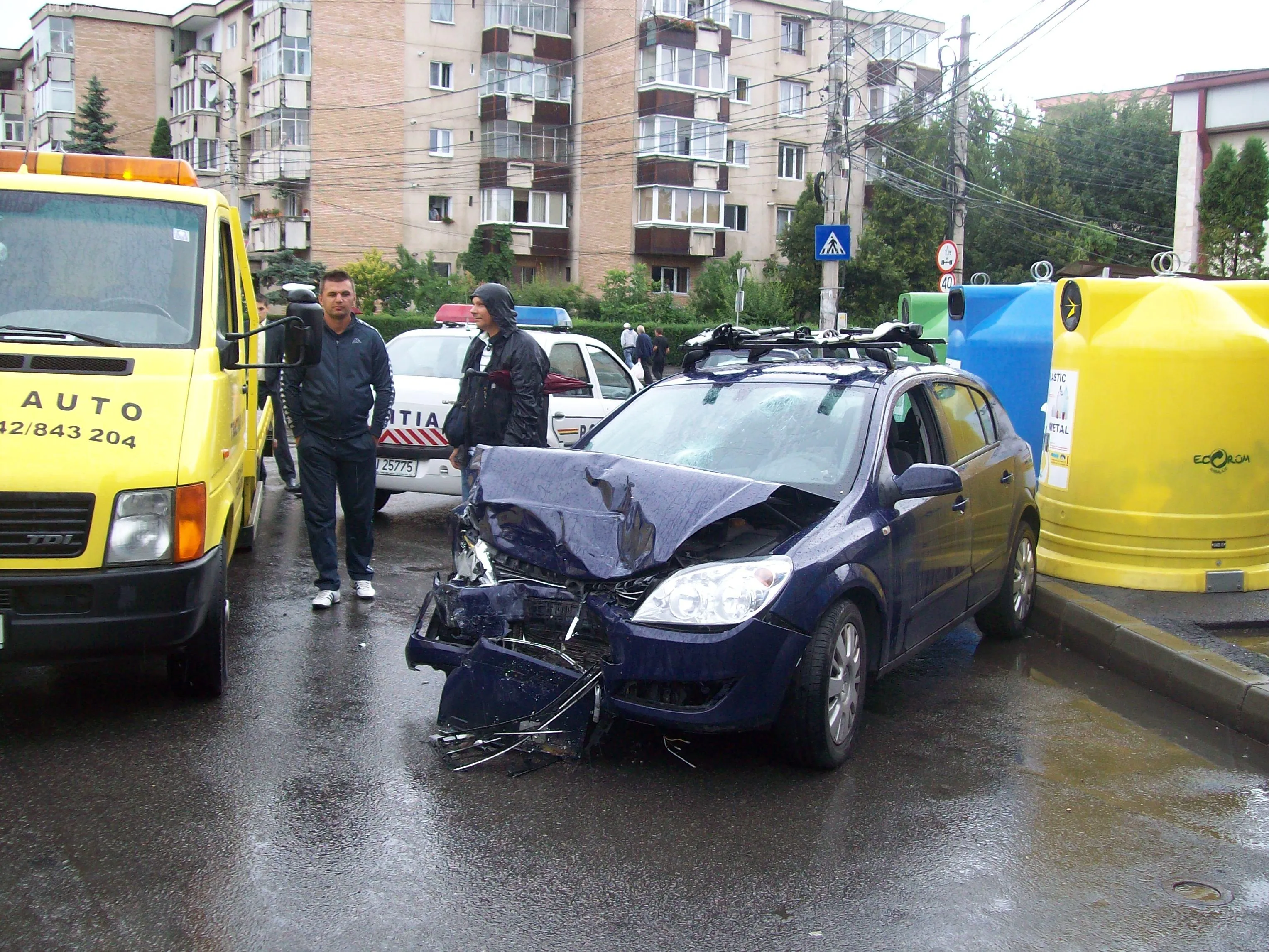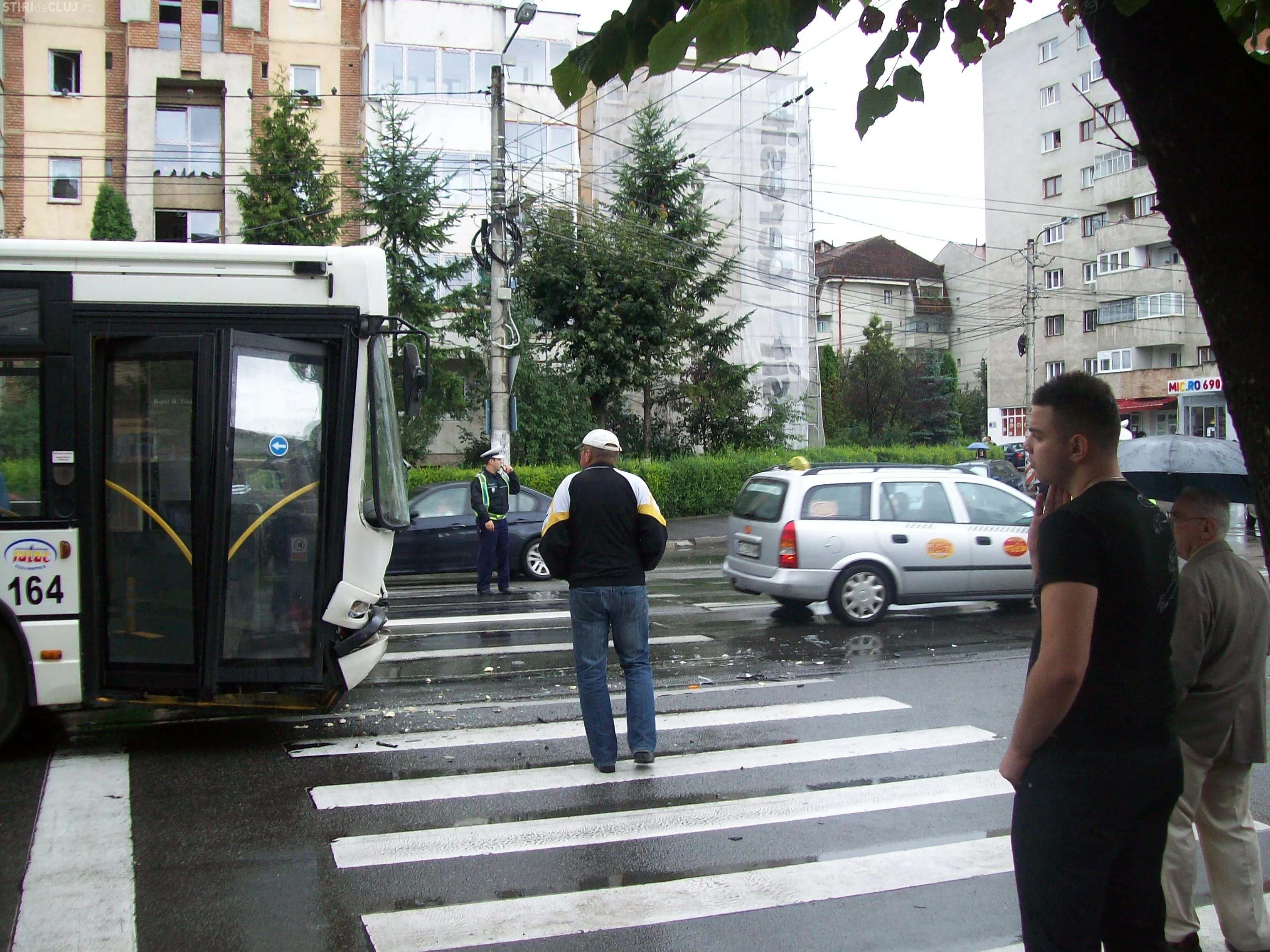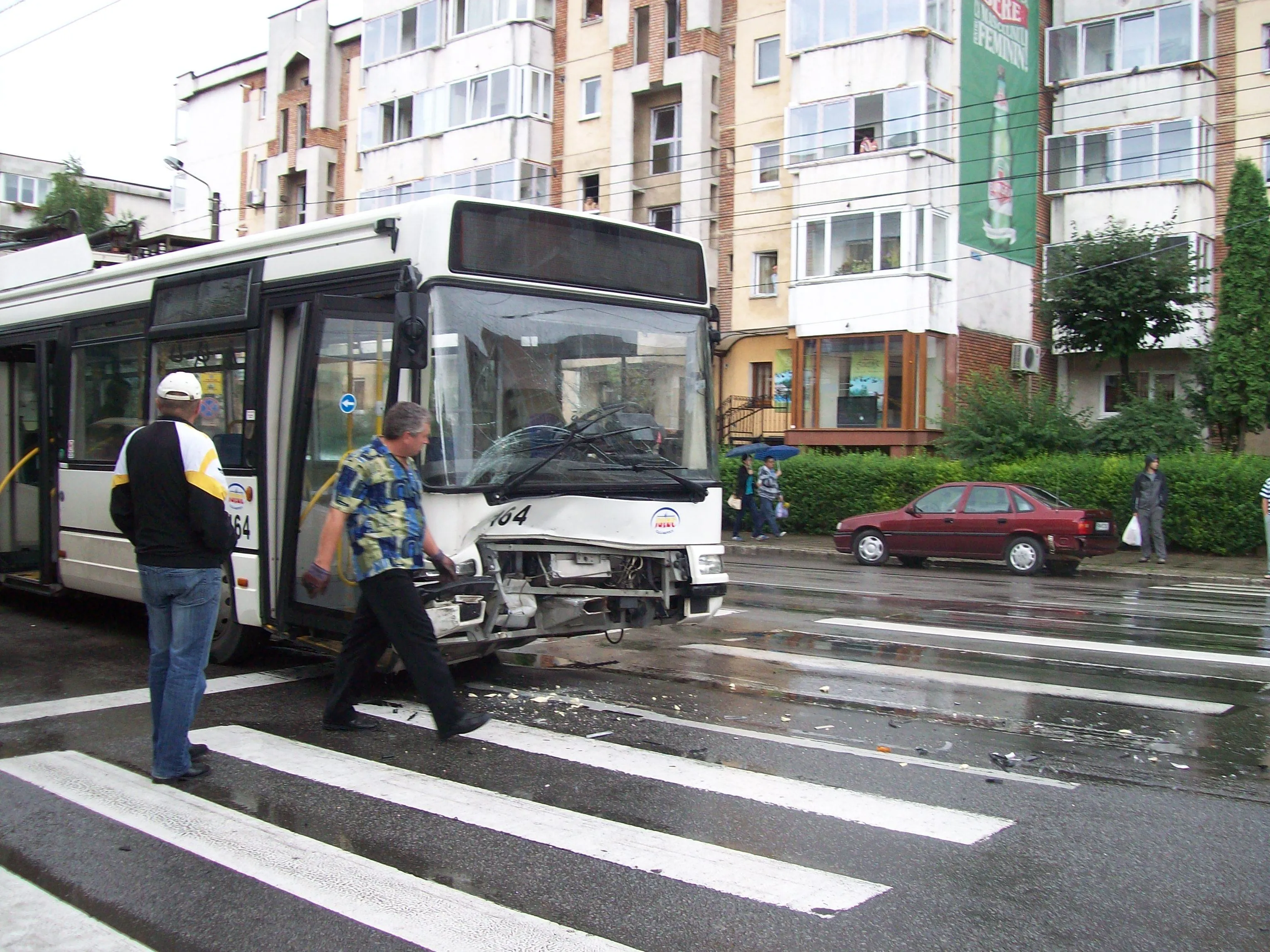Soferul unui autoturism marca Audi a intors in intersectie, fara a respecta semnul "Interzis la stanga" si a lovit un Opel Astra care circula regulamentar din directia centru - Gheorgheni. In urma impactului, ultimul autoturism a fost proiectat intr-un troleibuz plin cu calatori. Acestia au avut mare noroc ca au scapat teferi, intrucat soferul a oprit la timp.