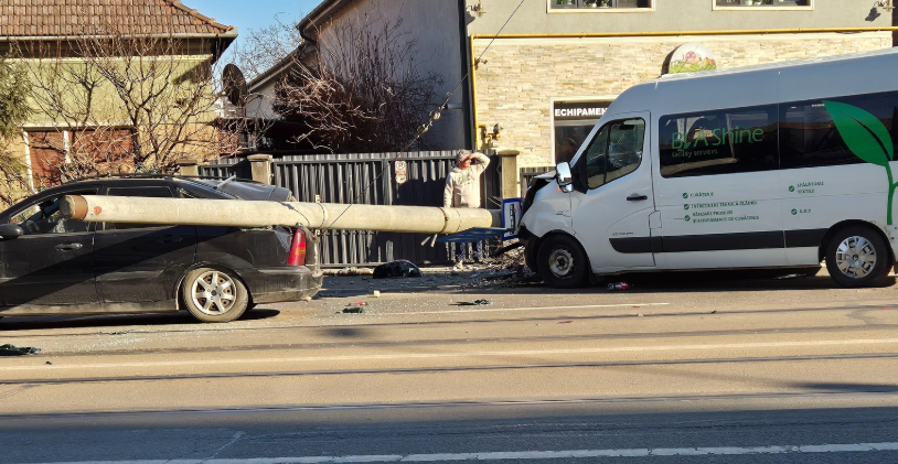 Din primele informații o mașină a lovit un stâlp, acesta căzând pe alt autoturism. Potrivit martorilor, traficul în zonă este îngreunat, iar circulația tramvaielor a fost oprită. Trei persoane au fost rănite.