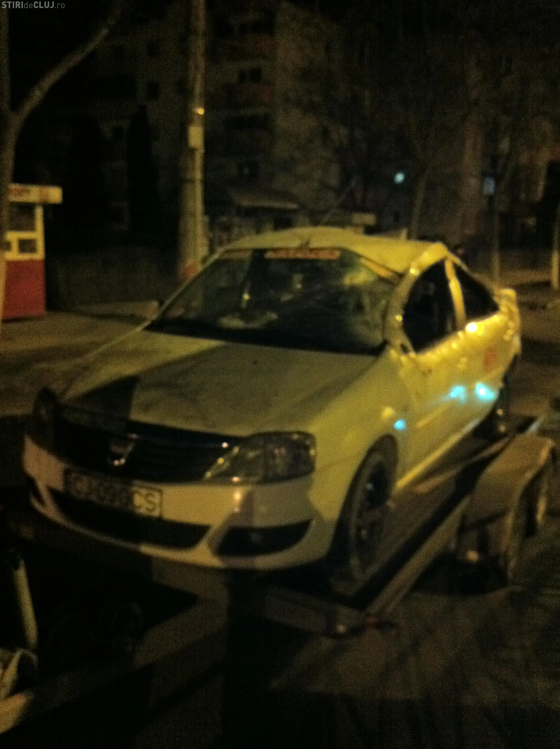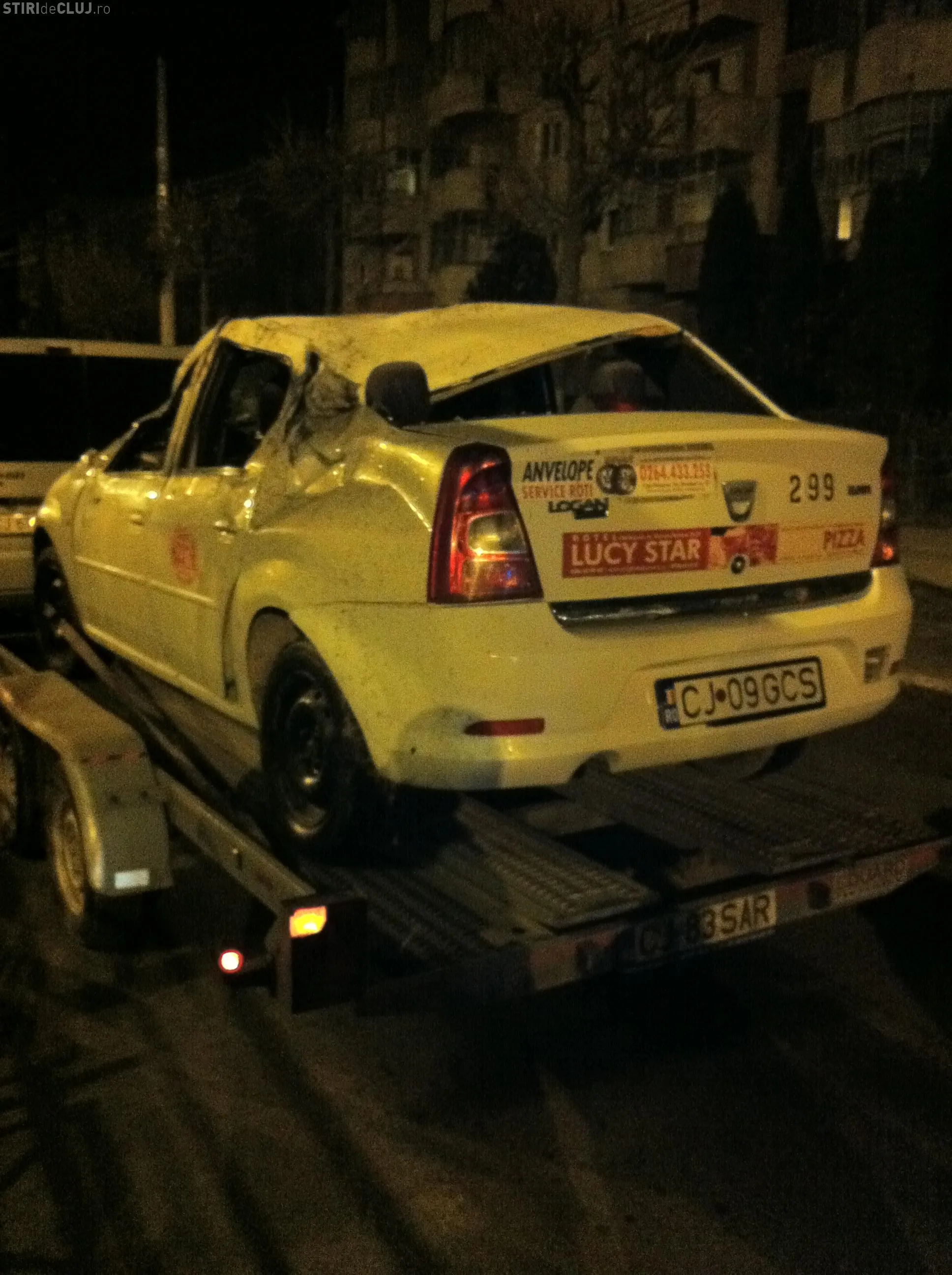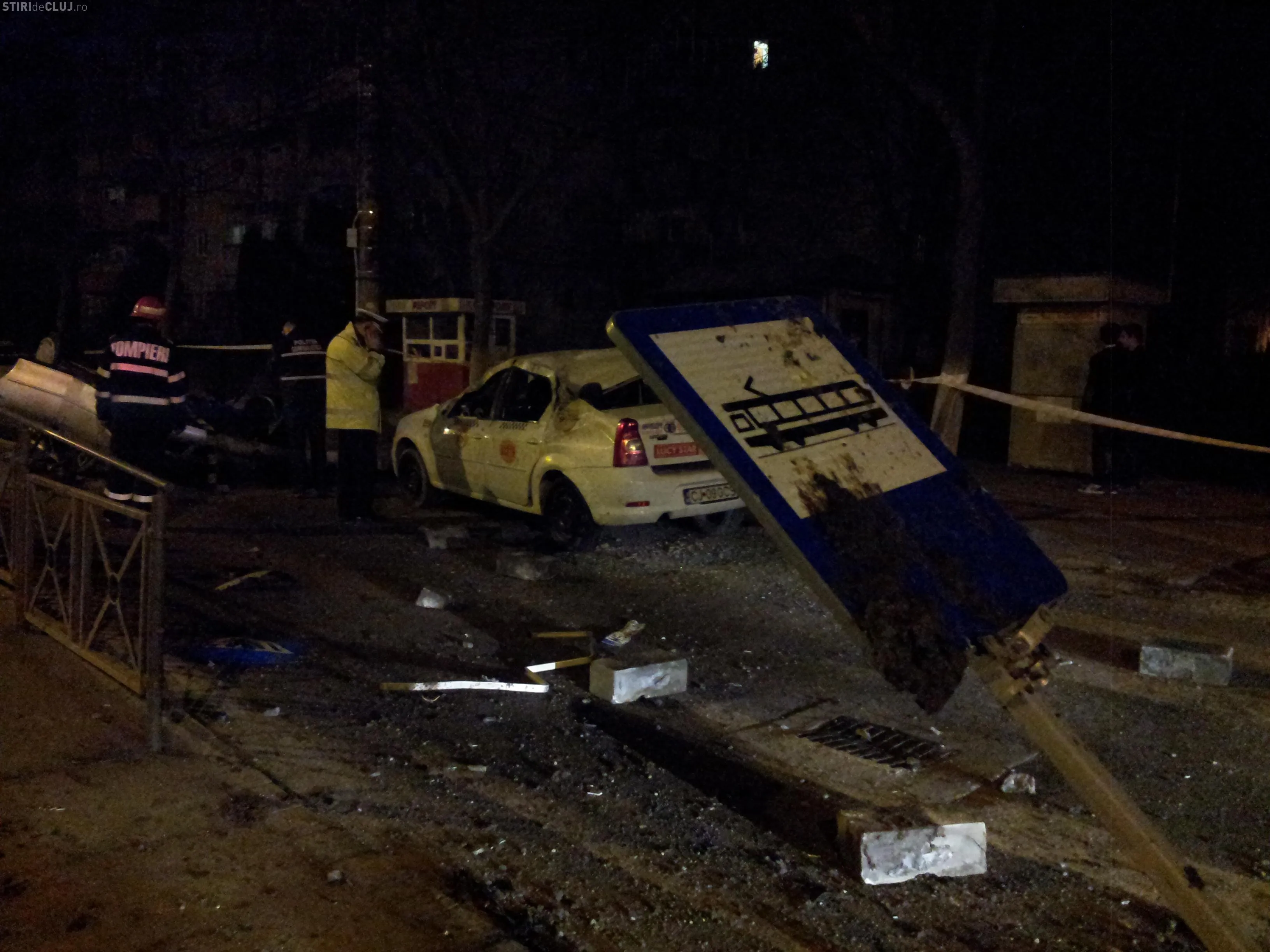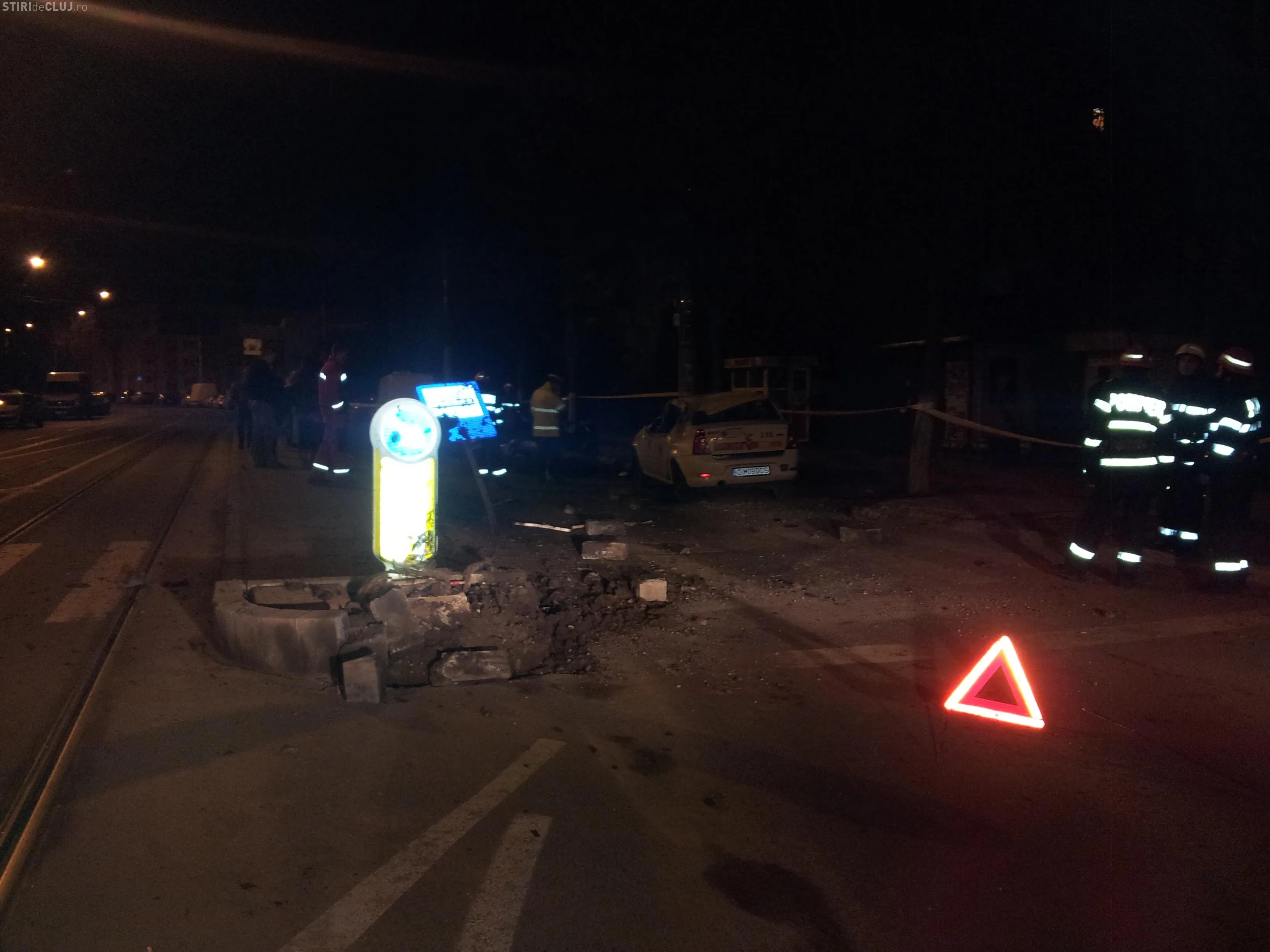 Un autoturism a lovit refugiul unei stații pentru tramvaie și s-a răsturnat. Un taximetru a fost lovit.