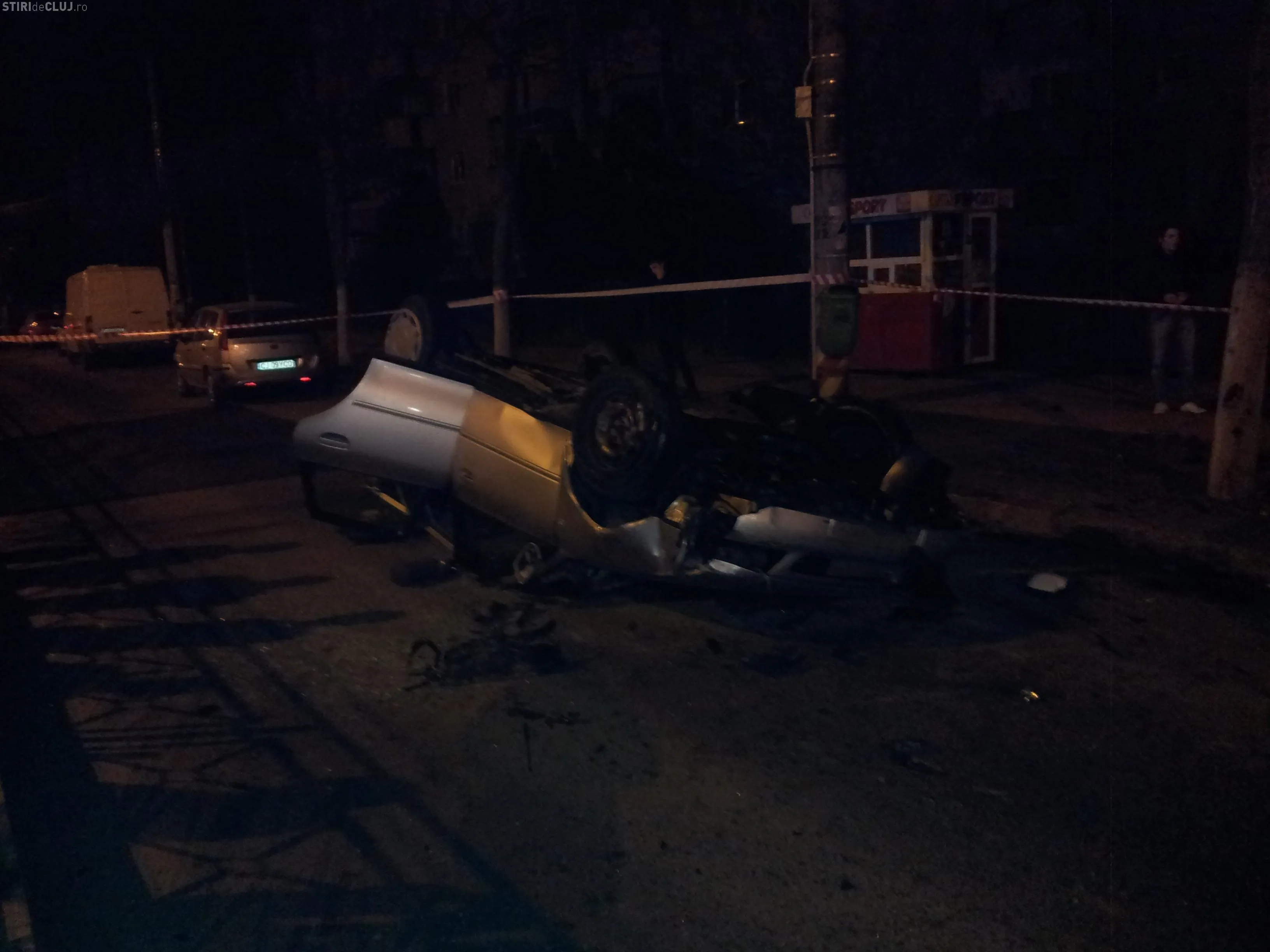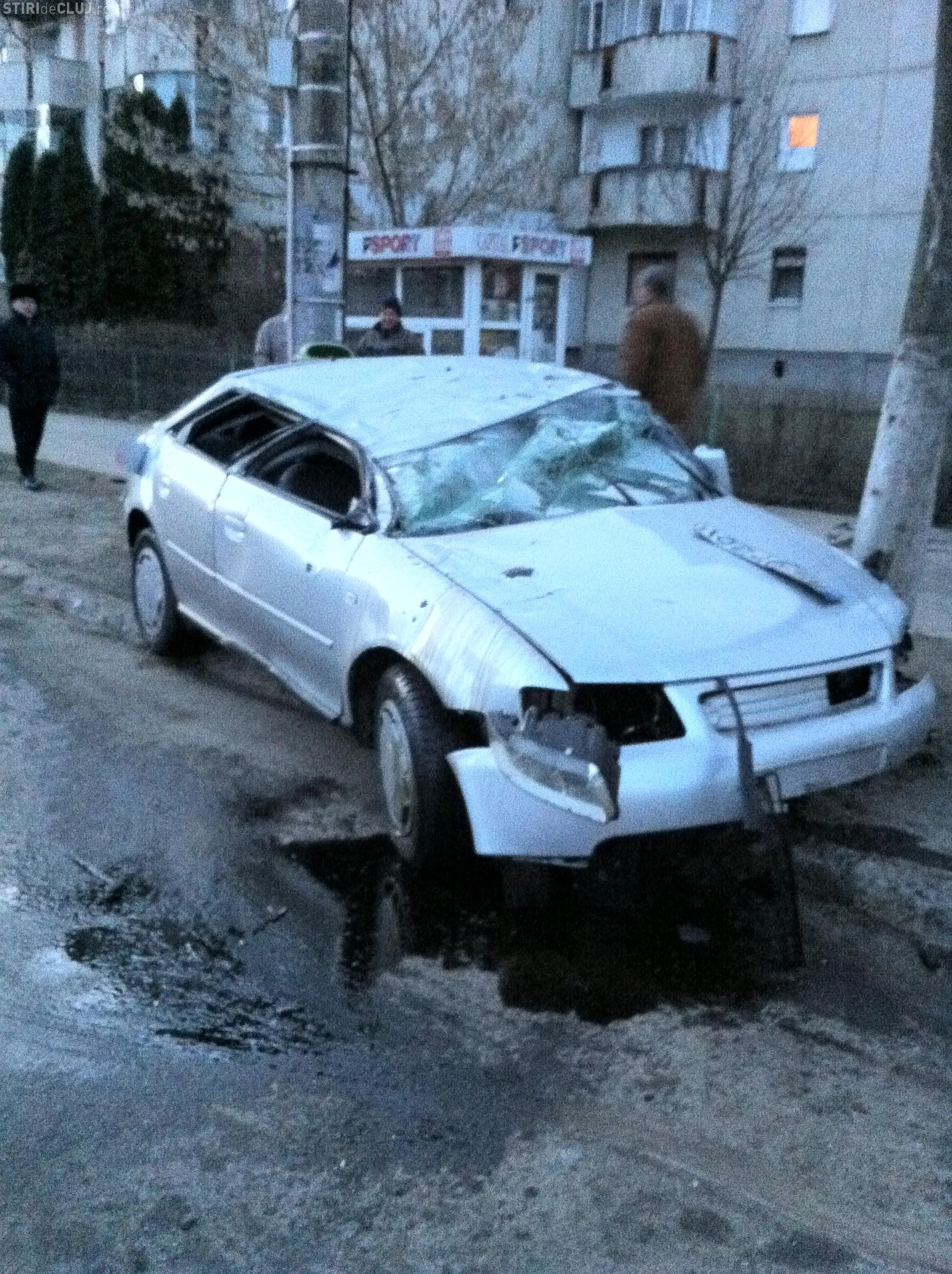 Accident pe strada Plopilor! O mașină s-a răsturnat - FOTO