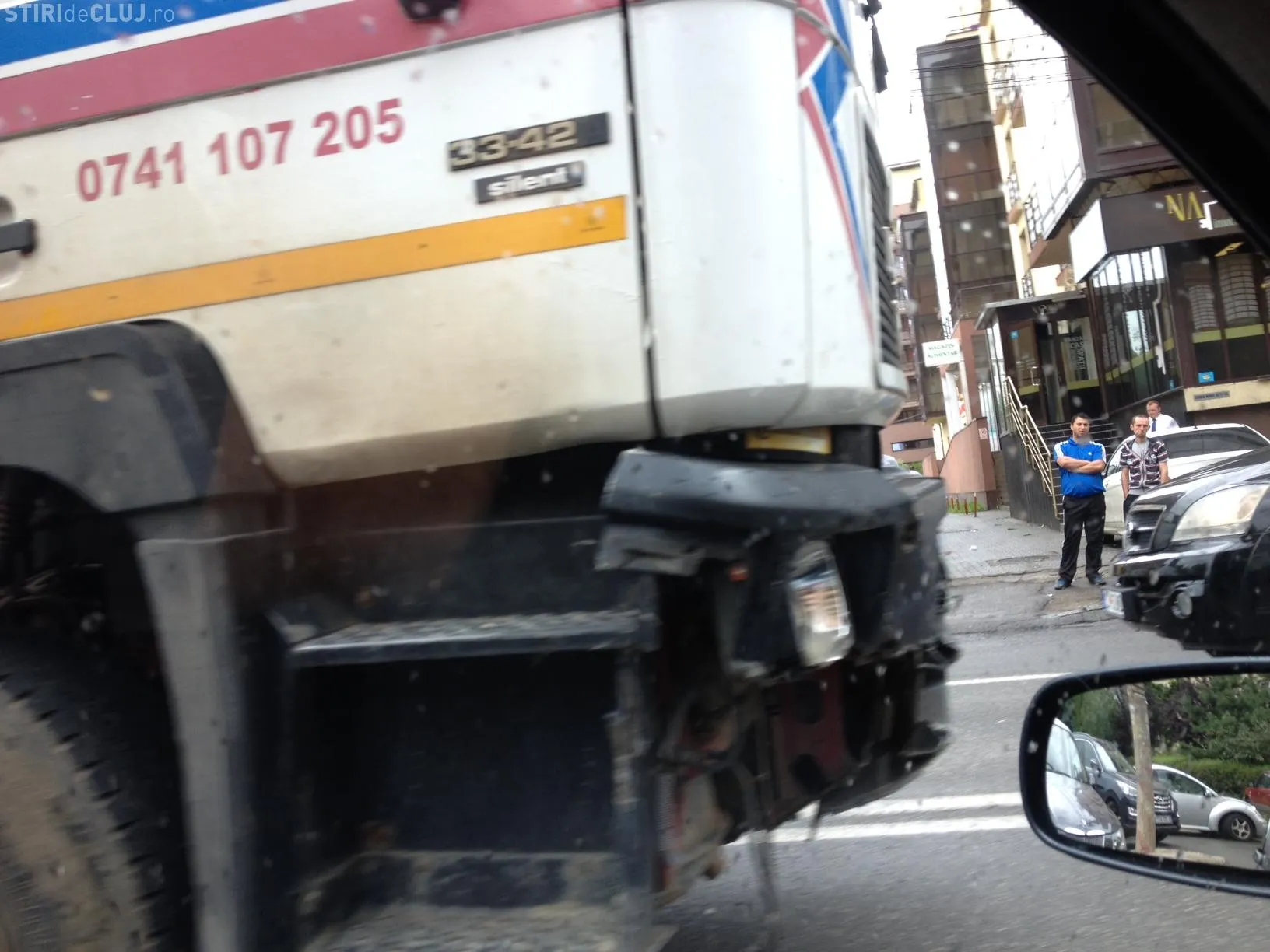 Polițiștii clujeni susțin că șoferul VW -ului circula de pe strada Venus și nu a acordat prioritate autocamionului.
