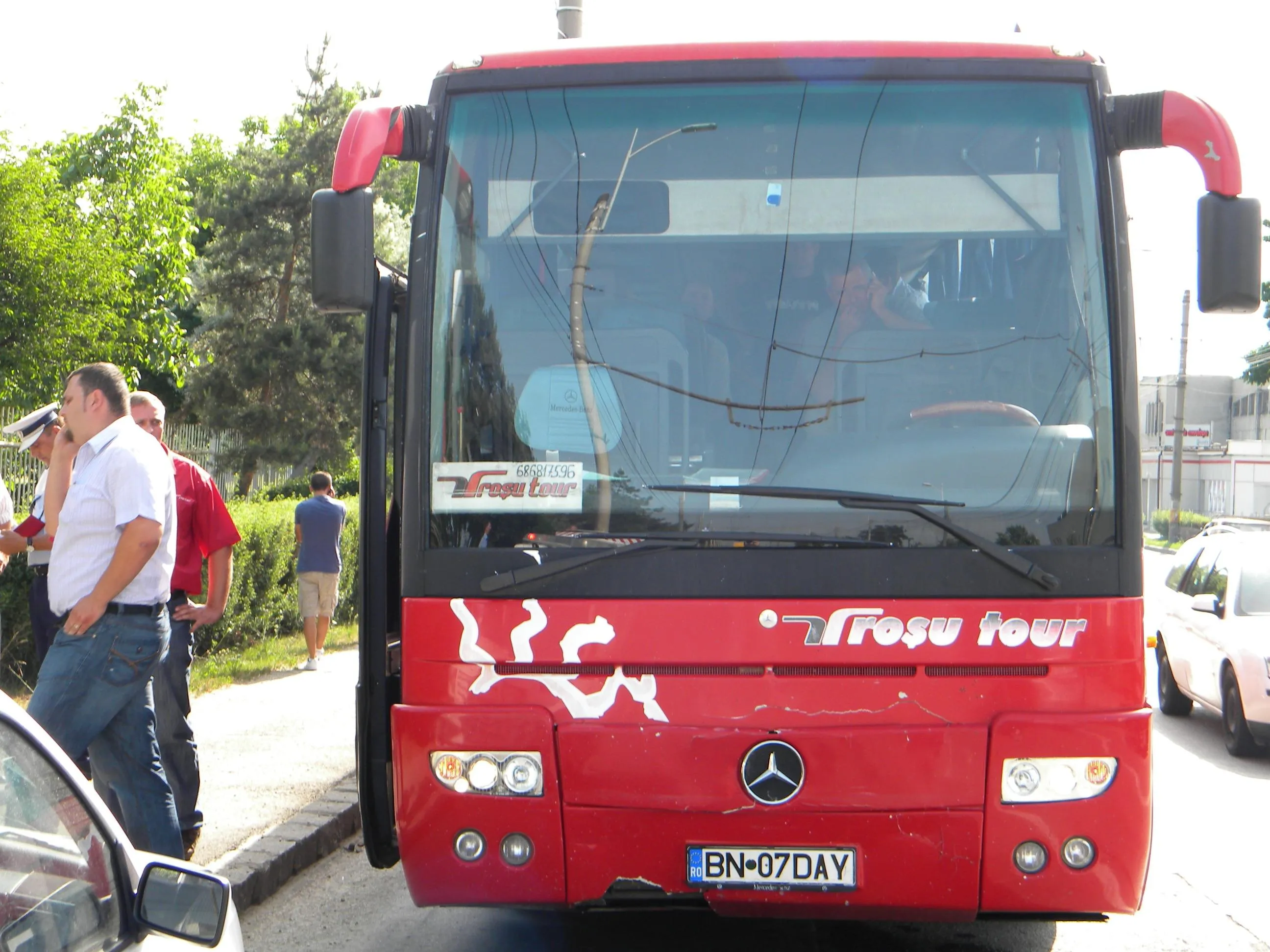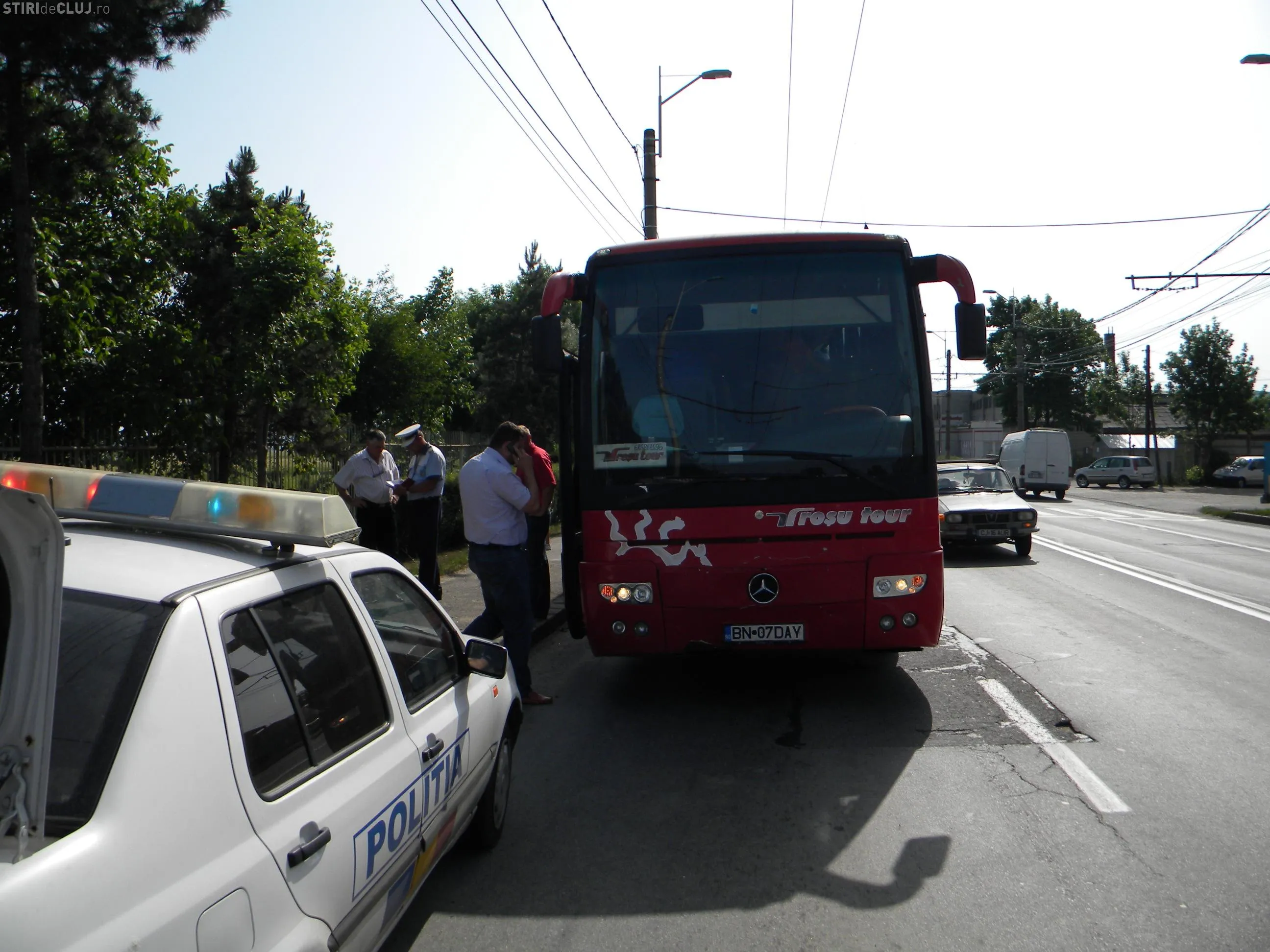 Accidentul s-a produs in apropierea Aeroportului International Cluj. Soferul unui autocar a intrat intr-un autoturism care a oprit la o trecere de pietoni, pentru a-i acorda prioritate unui barbat.