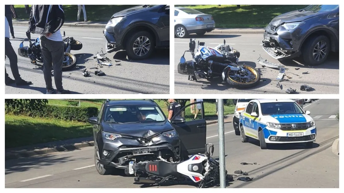 Accident pe strada Unirii din Cluj-Napoca: O mașină și o motocicletă s-au ciocnit - FOTO