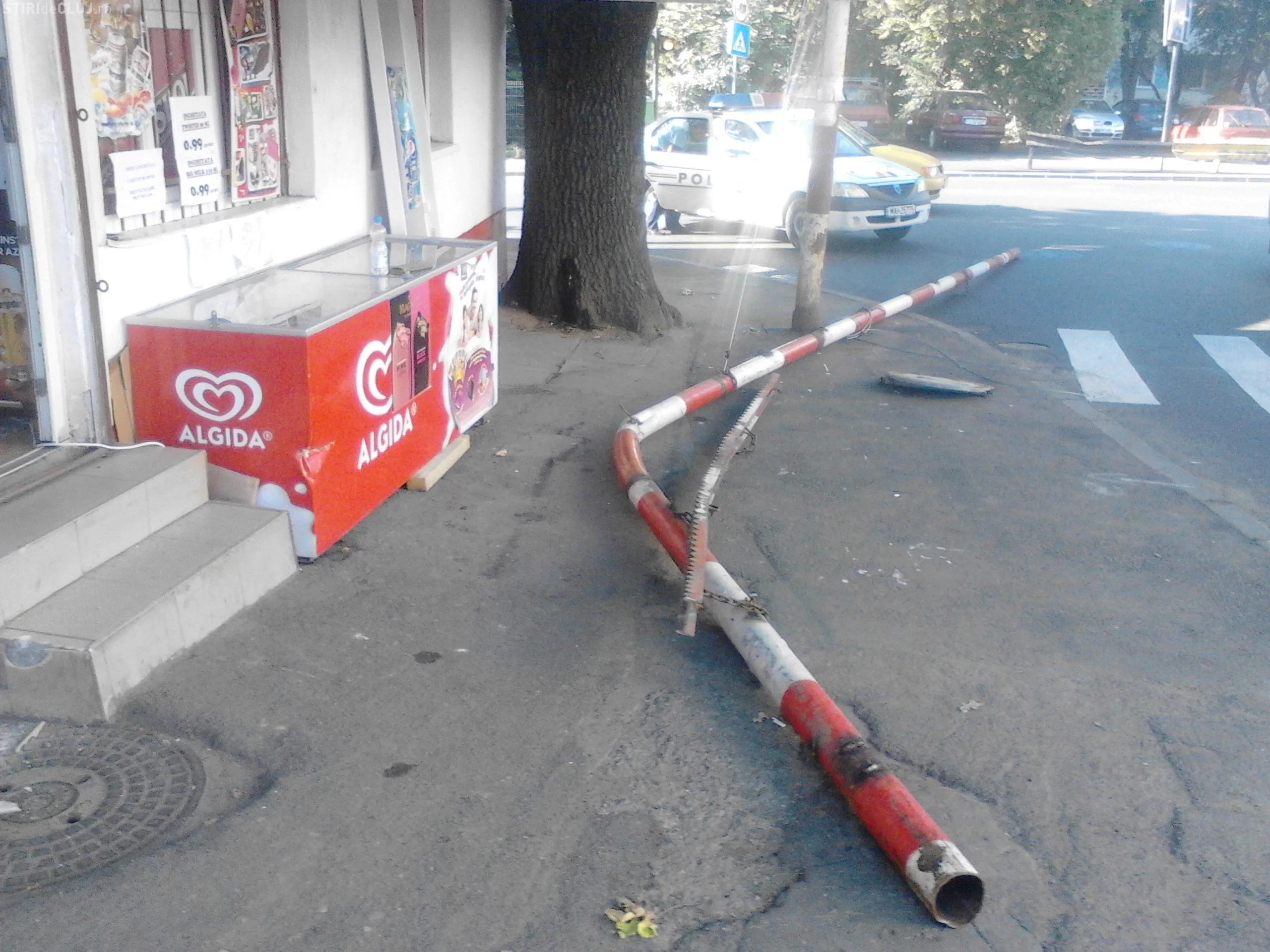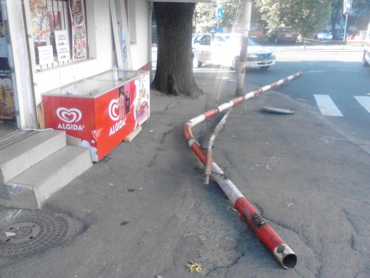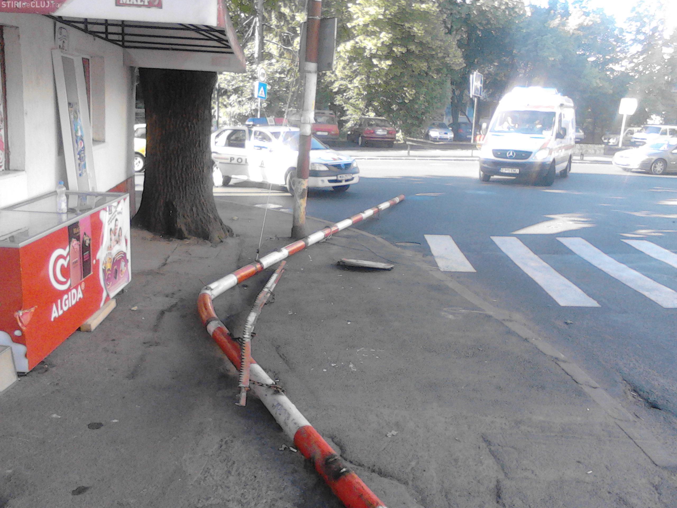 Accident pe Tăietura Turcului! A demolat bariera, care a căzut pe trotuar lovind o femeie - FOTO