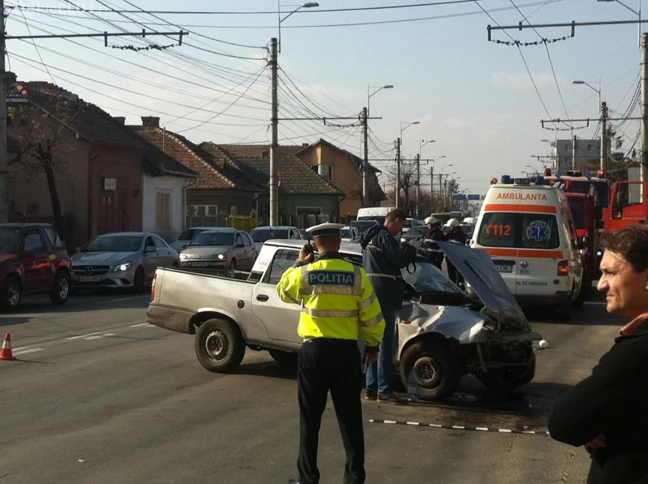 Accident pe Traian Vuia! O maşină cu muncitori lovită puternic - FOTO