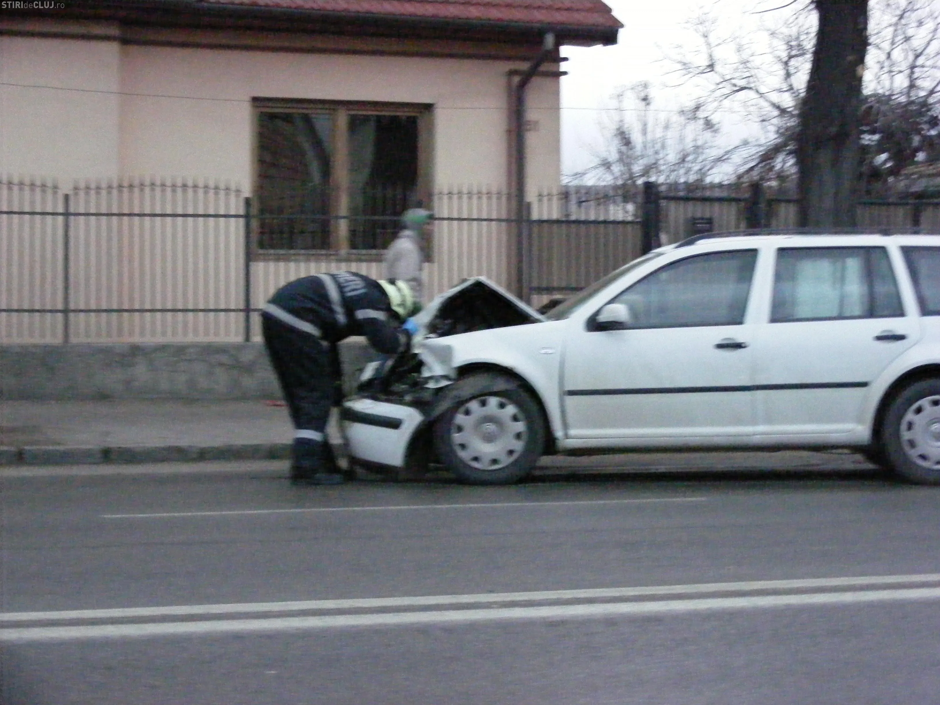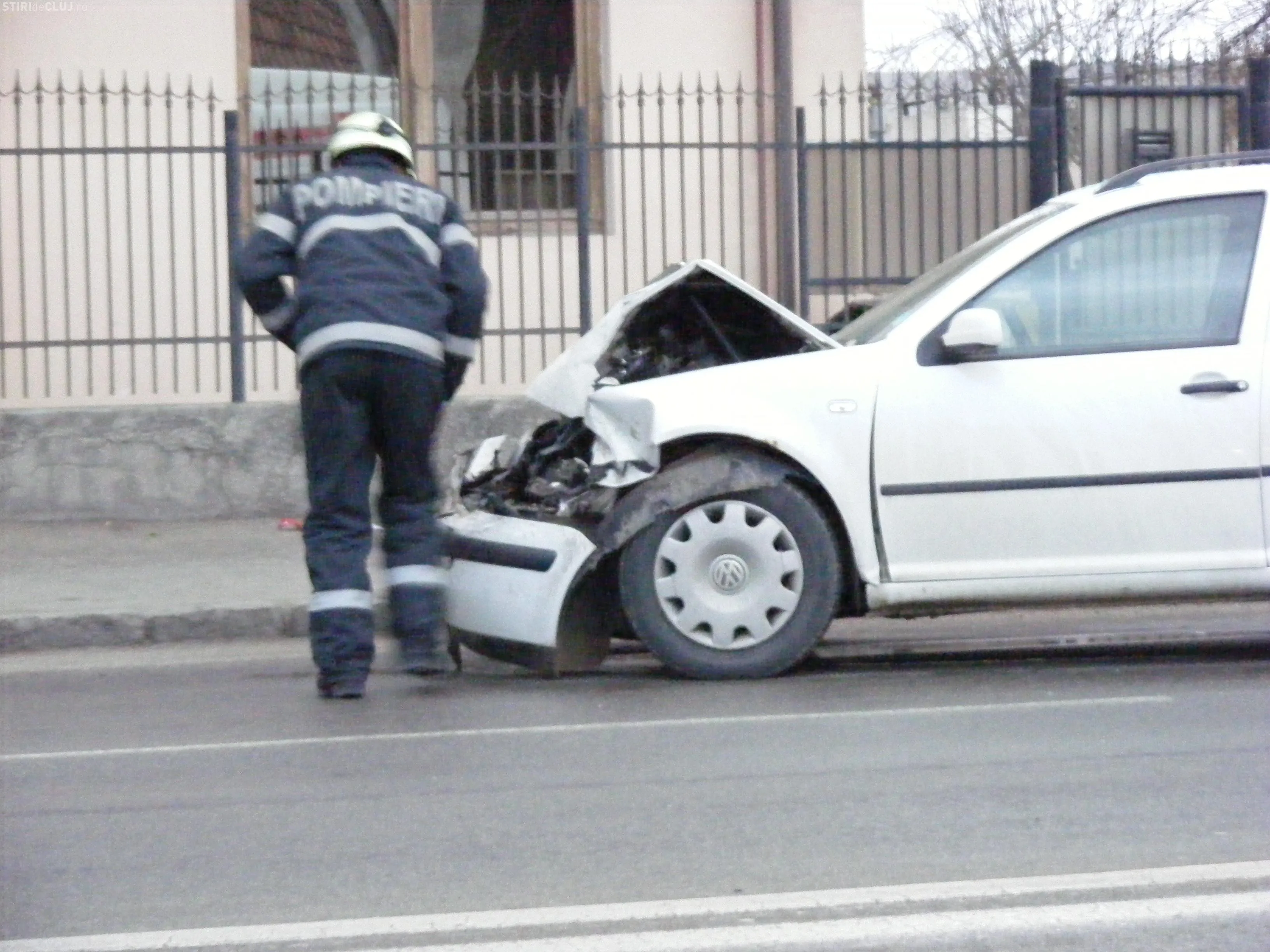 Accident pe Traian Vuia! Un VW GOLF a ajuns pe trotuar FOTO