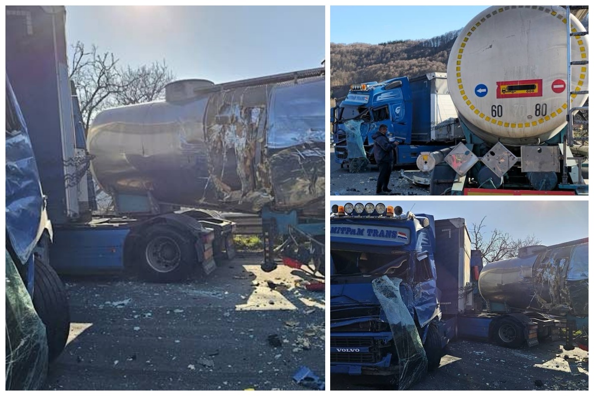 Din primele informații, au fost implicate două TIR-uri și o autocisternă, un bărbat fiind consultat de paramedici în urma impactului. Din fericire, acesta nu a fost rănit grav.