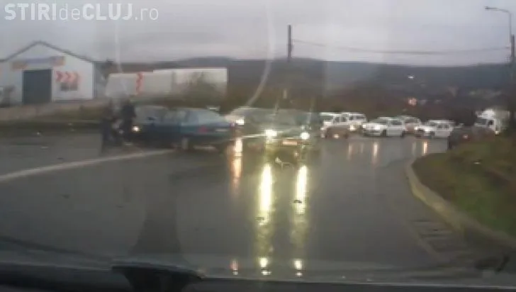 Un șofer a derapat luni dimineața, într-o curbă de pe Varianta Zorilor - Mănăștur, lovind un autoturism care urca.