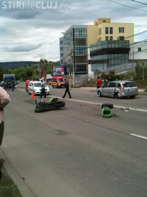 Un accident rutier s-a produs sâmbătă, 1 iunie, pe varianta Zorilor-Mănăștur, în jurul orei 16.40, fiind implicate o motocicletă și un automobil.