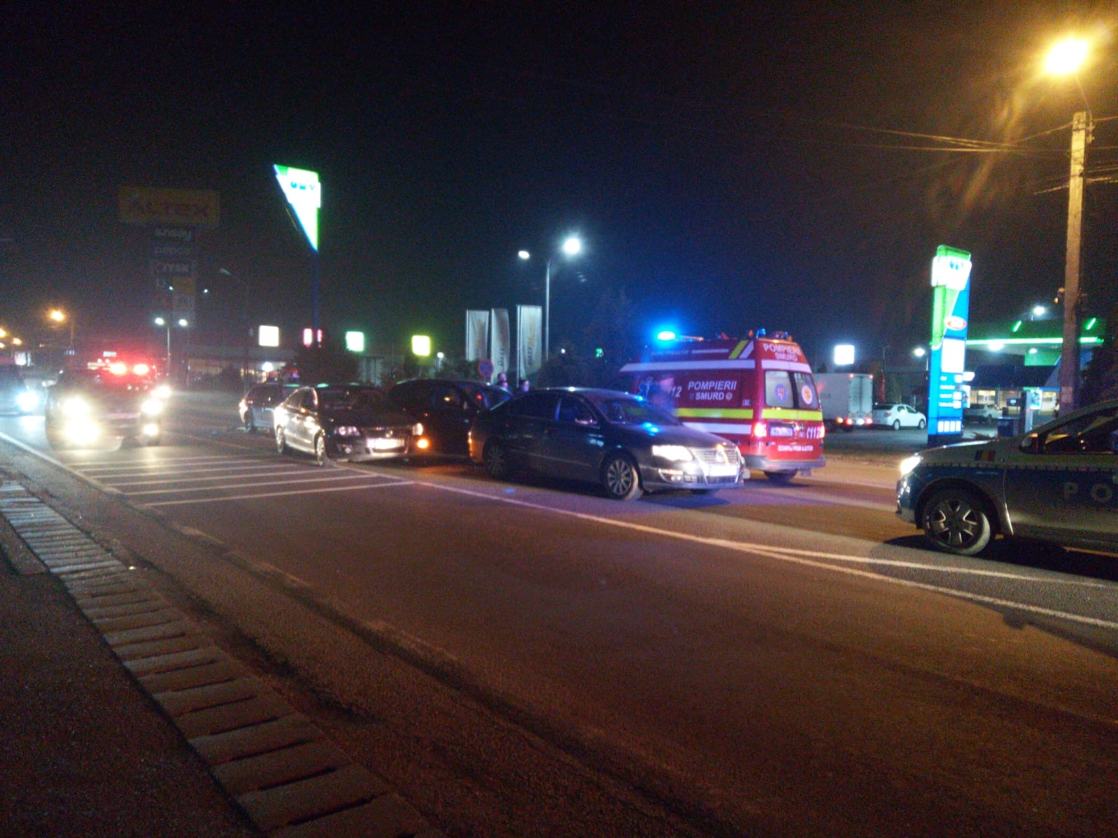 A rezultat rănirea unei femei, în vârstă de 56 de ani, pasageră în primul autovehicul avariat.