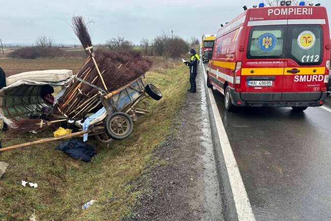 Un tânăr de 23 de ani din Cluj aflat la volanul unui TIR a lovit o căruță în care se aflau două persoane. Din păcate, în urma impactului, un bărbat și-a pierdut viața iar o femeie de 52 de ani a fost grav rănită.