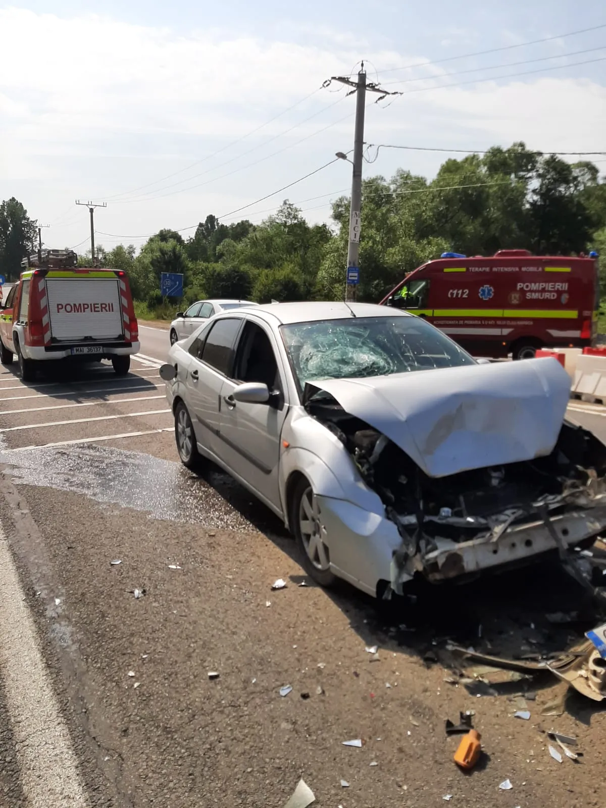 Solicitarea pentru intervenția pompierilor a fost înregistrată în jurul orei 10.50, iar la fața locului au găsit două autoturisme avariate și ocupanții ieșiți din acestea.