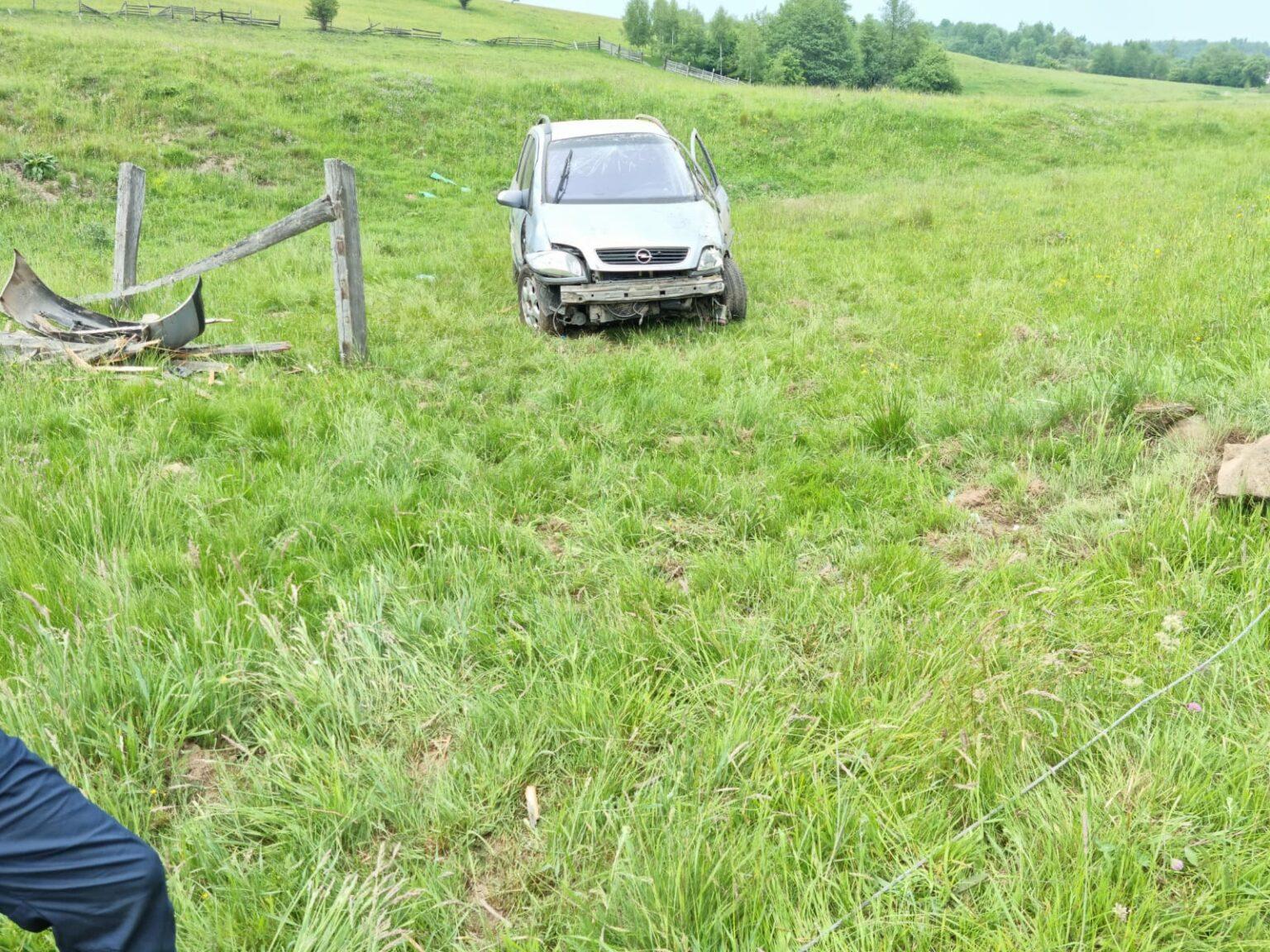 Accident rutier în localitatea Vânători, județul Cluj. O mașină a ieșit de pe carosabil și s-a izbit într-un stâlp