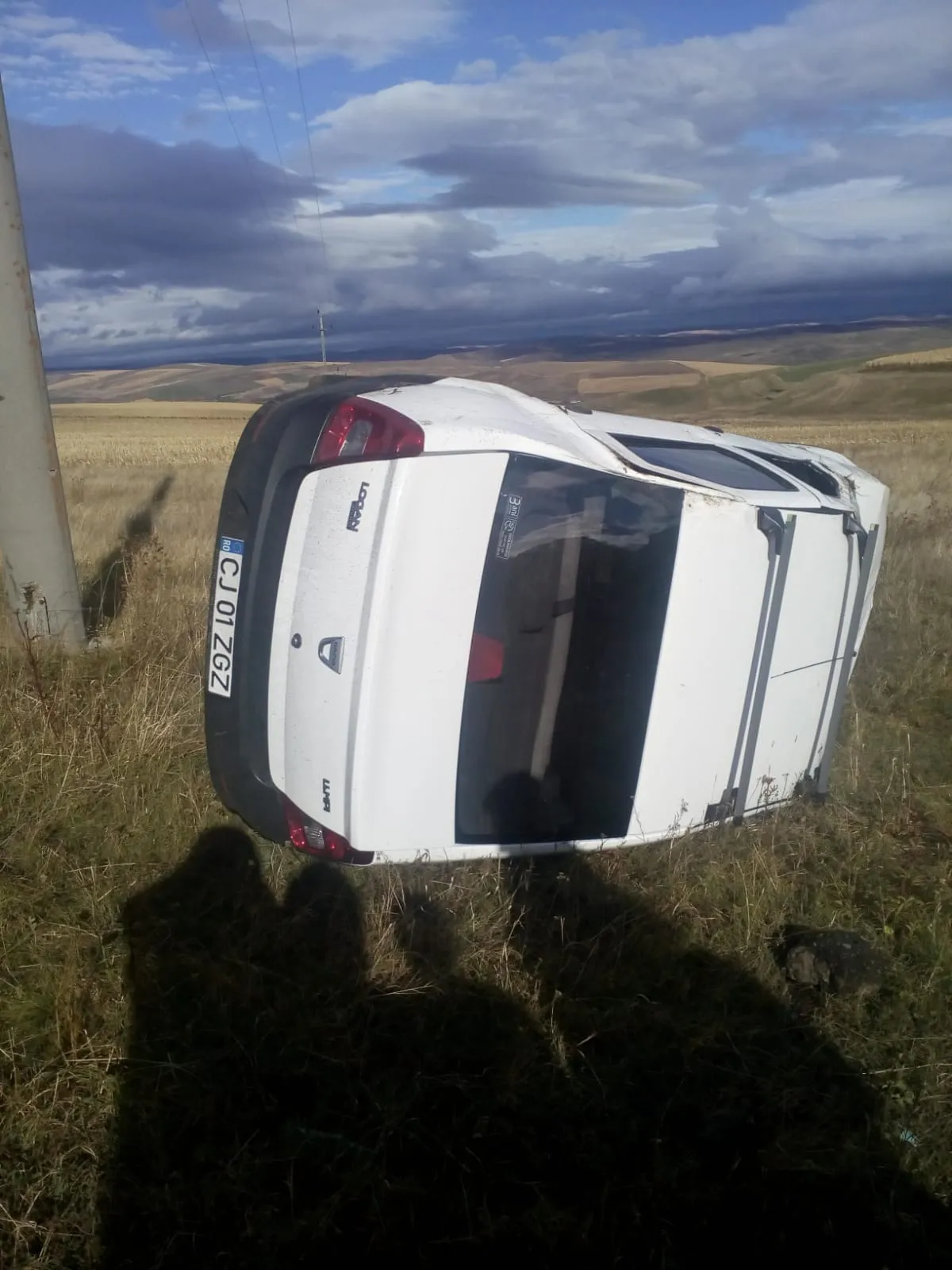 O mașină s-a răsturnat, dar șoferul a primit îngrijiri medicale, refuzând transportul la spital.