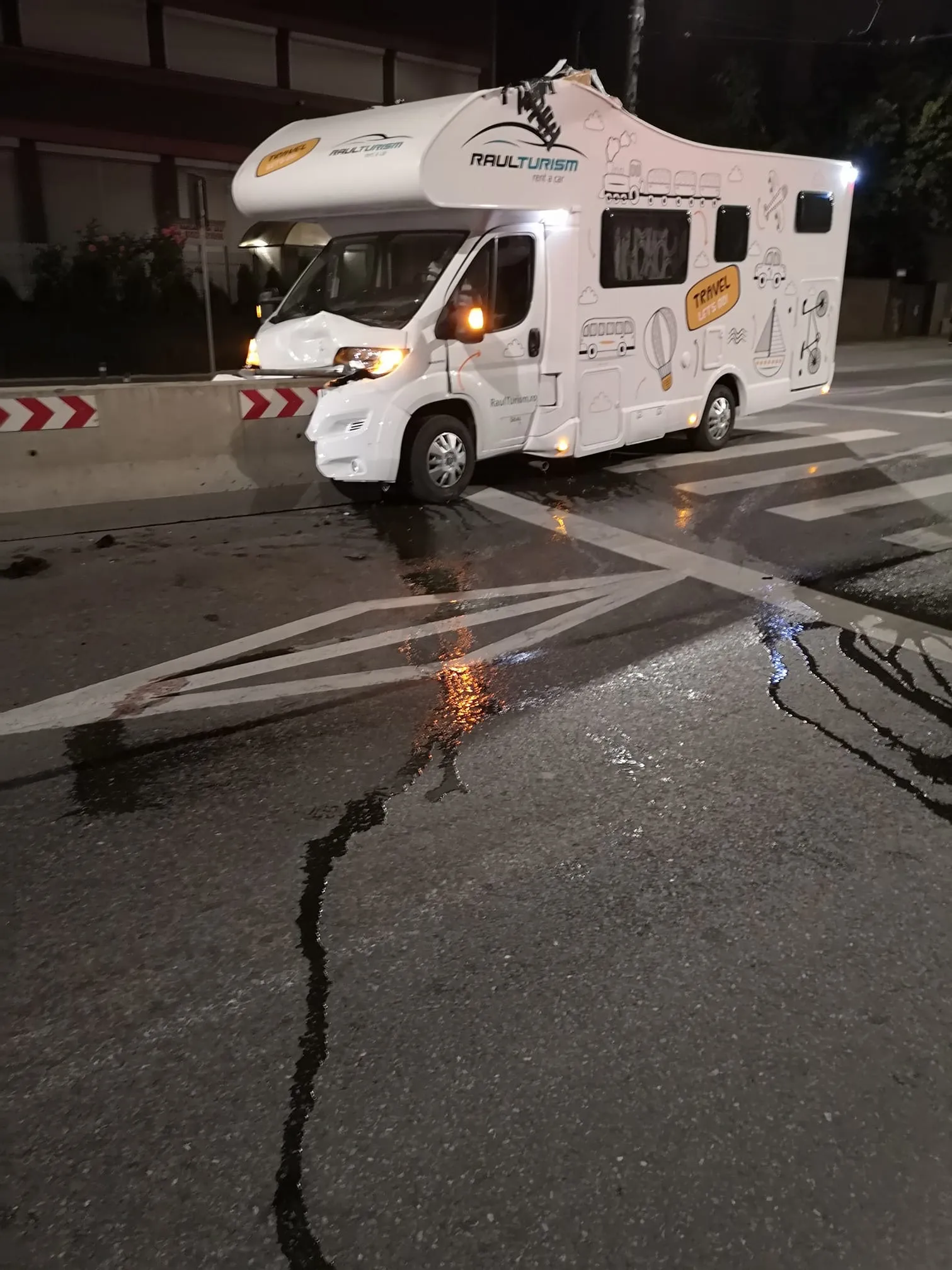 Din primele informații, un șofer a intrat cu o autorulotă în separatorul de sens.