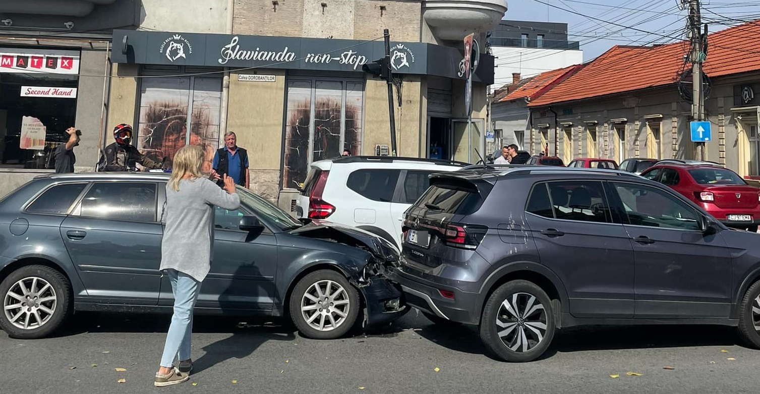 Accident rutier pe Calea Dorobanților. Două mașini s-au tamponat: ,,Când nu știi să păstrezi distanța…”