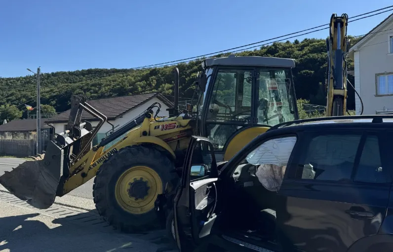 Accident în Sălicea: autoturism lovit de un buldoexcavator, o femeie evaluată de medici
