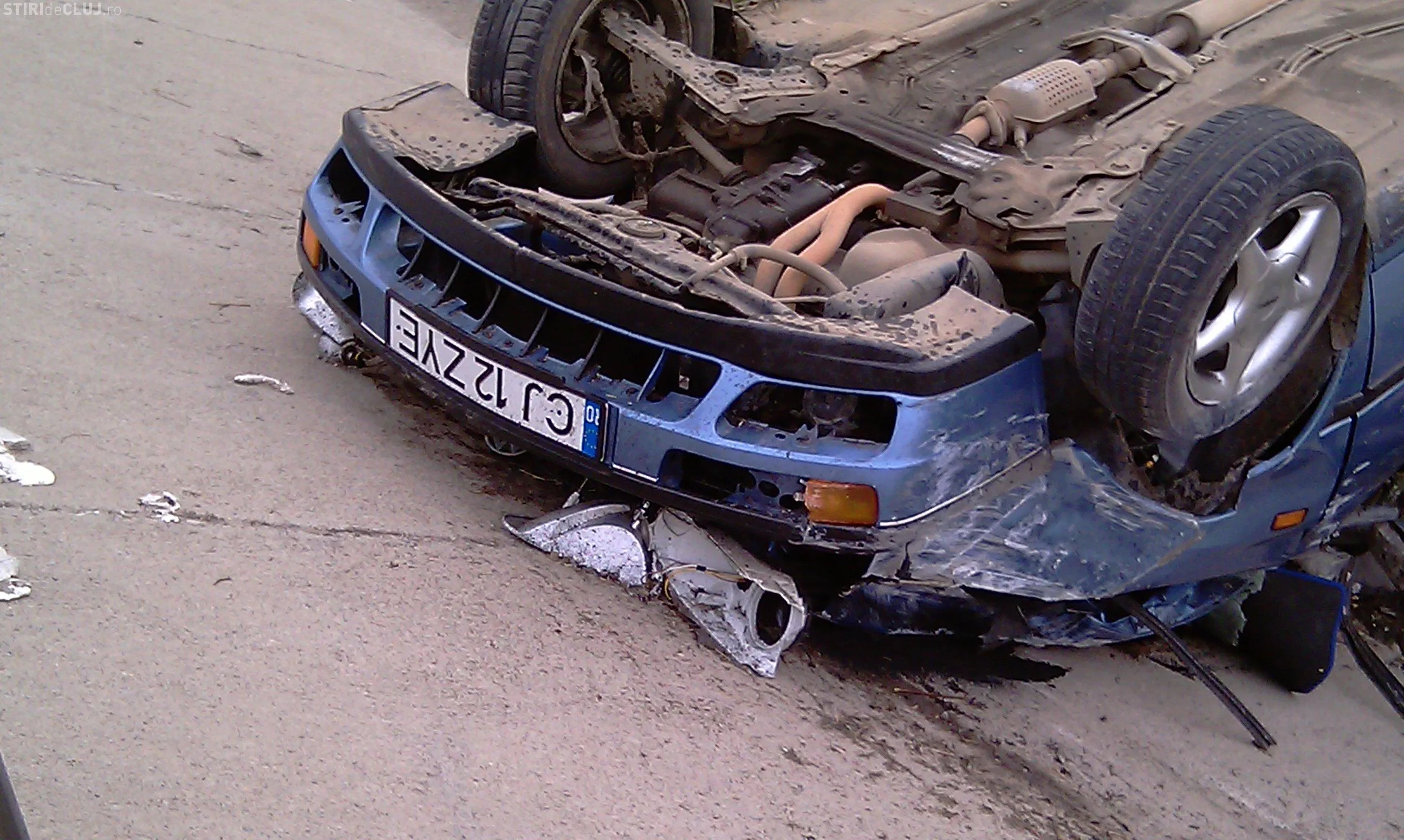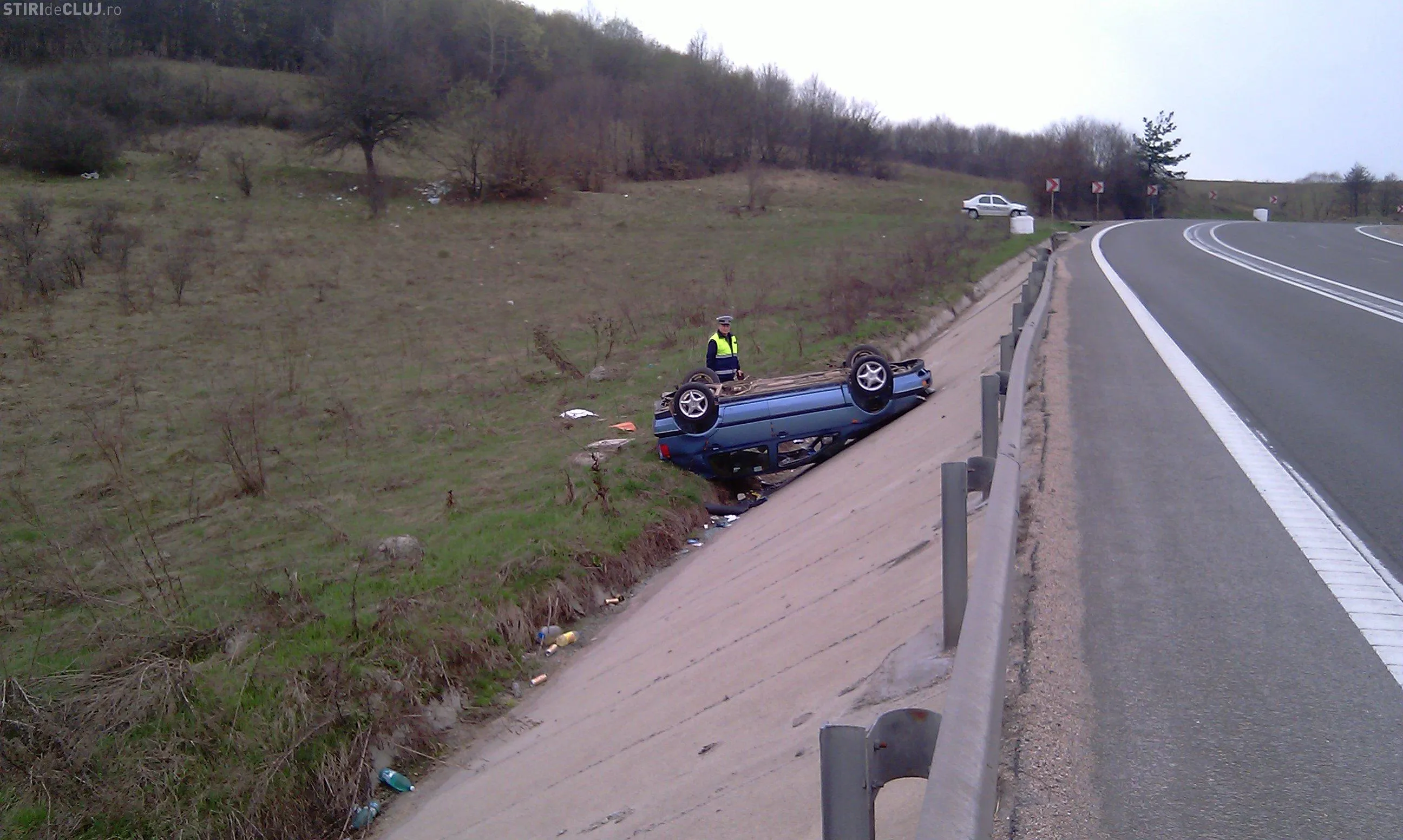 Un accident spectaculos de circulatie s-a produs astazi pe raza comunei Capusu Mare, jud. Cluj. Un sofer a pierdut controlul volanului si a aterizat in santul de pe marginea Drumului National 1 (DN1). Conducatorul auto a disparut de la locul incidentului.