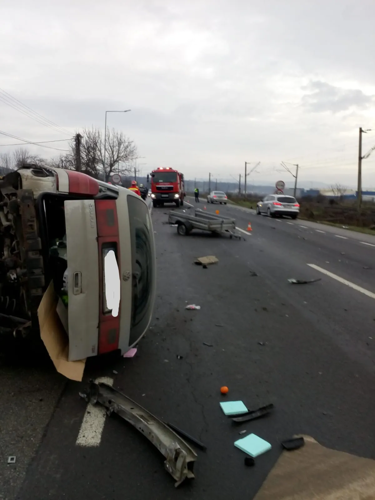 Au fost alertate o autospecială și un echipaj SMURD din Detașamentul de Pompieri Dej. Salvatorii au găsit la locul evenimentului un autoturism ieșit în șanțul de colectare a apelor pluviale de pe marginea carosabilului și unul răsturnat.