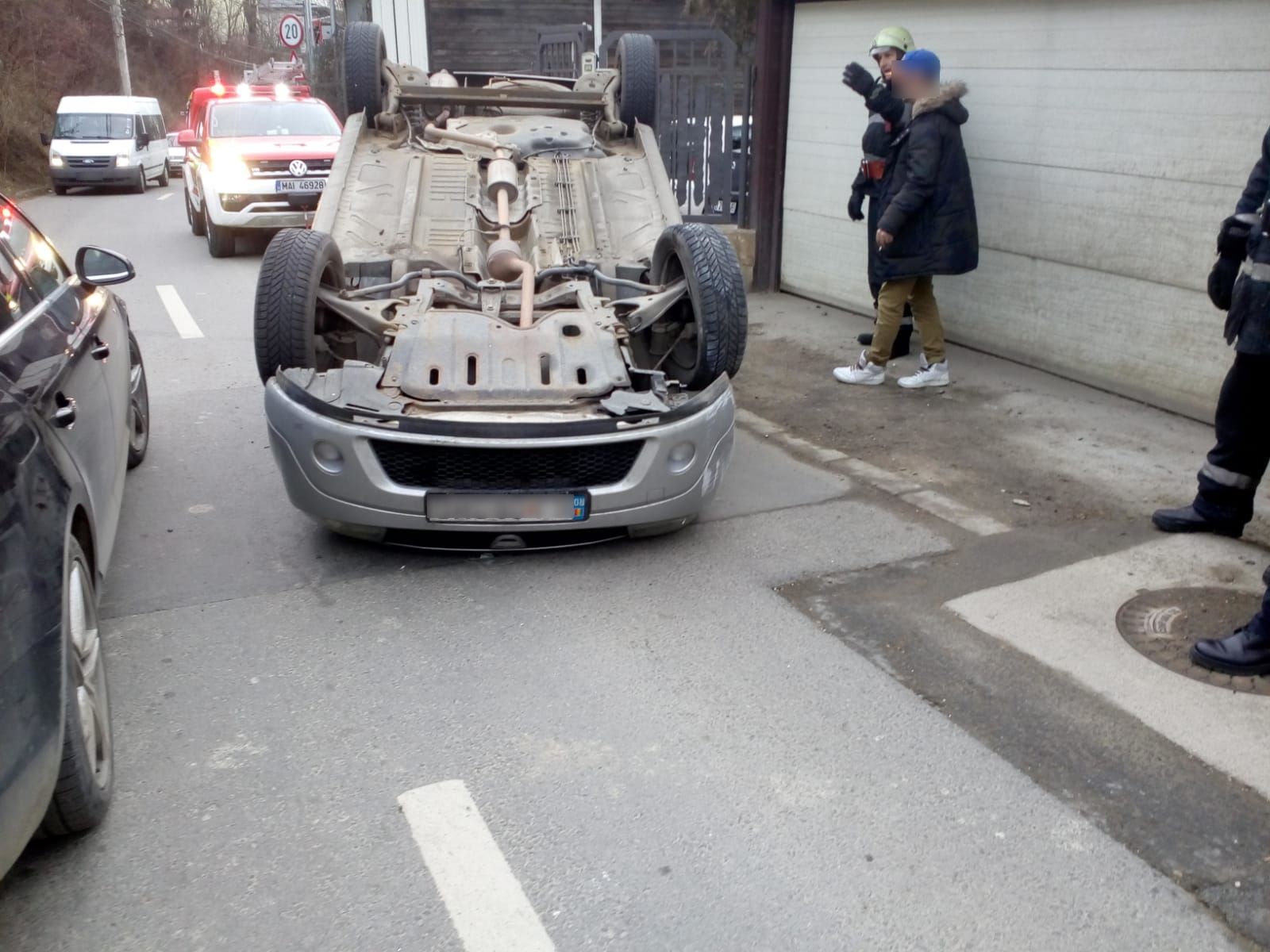 Pompierii au sprijinit proprietarul pentru a readuce autoturismul pe roți și pentru a debloca partea carosabilă în vedera reluării circulației pe strada respectivă.