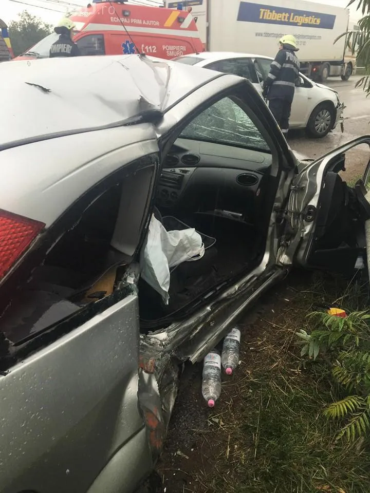 In urma impactului, conducatorul auto si un pasager din prima masina au fost proiectati afara din autoturism.