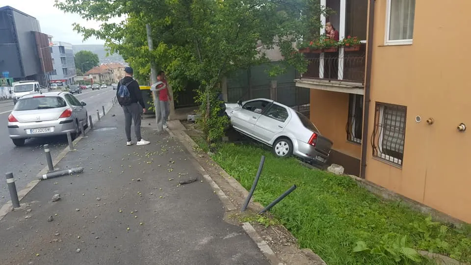 Accident spectaculos pe Calea Turzii! A zburat peste trotuar și s-a oprit la geamul unui bloc - FOTO