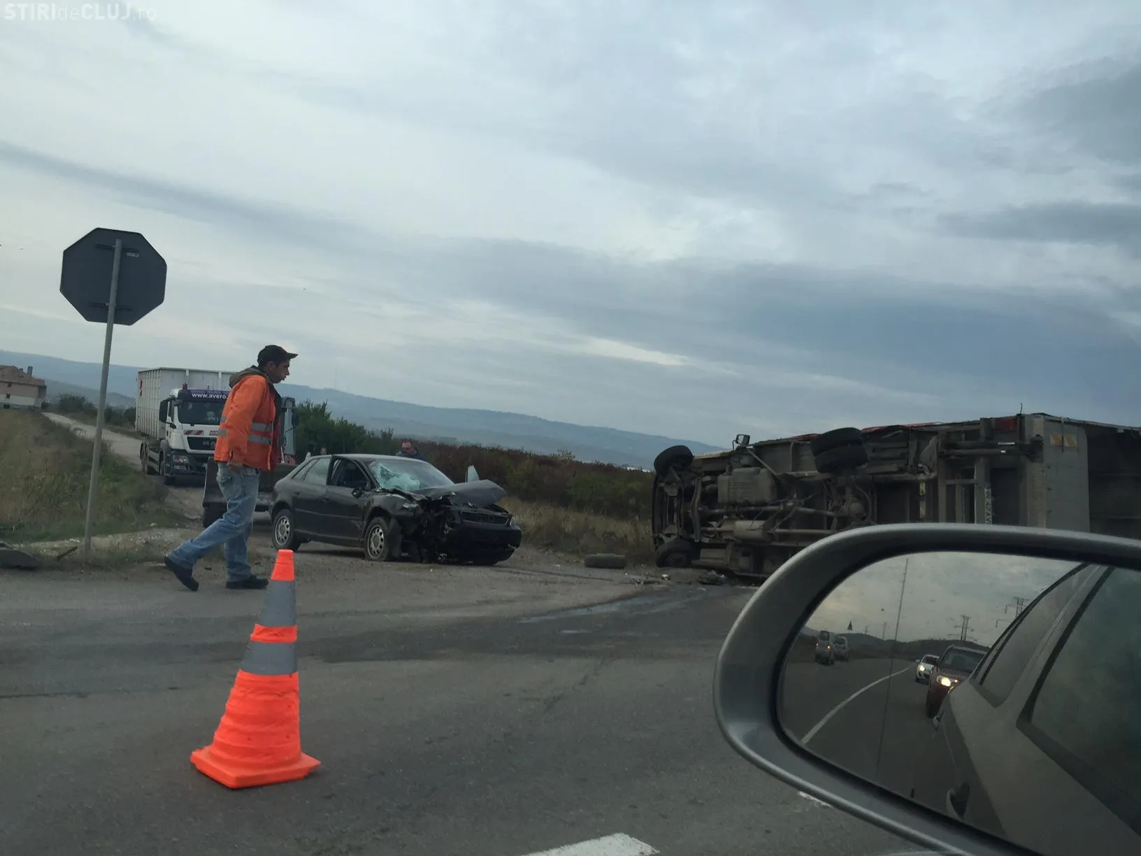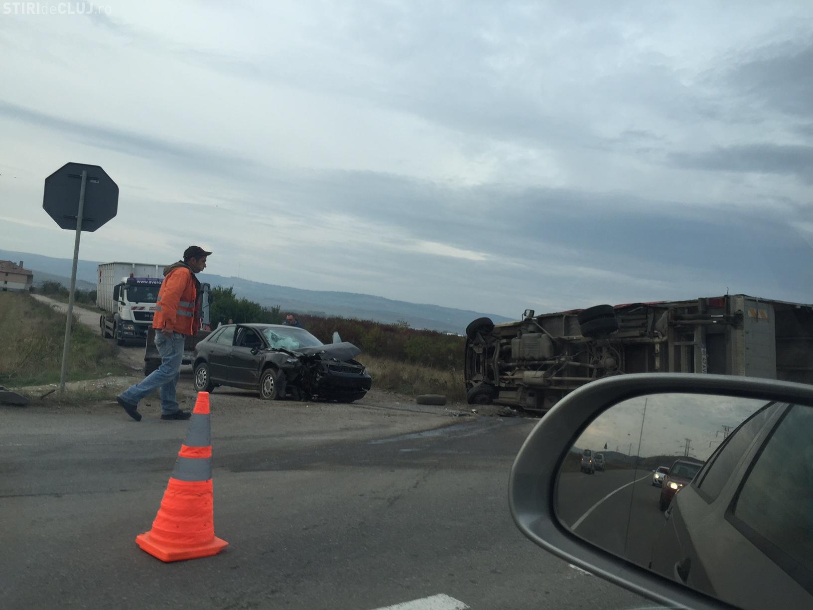 Accident SPECTACULOS pe centura Clujului! Un camion a fost răsturnat pe drum de un șofer - FOTO UPDATE