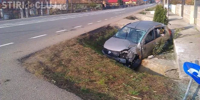 Accident spectaculos pe un drum din Cluj. Un șofer a scăpat ”ca prin urechile acului” după ce a zburat peste șosea cu mașina VIDEO