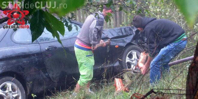 Accident spectaculos pe un drum din Cluj. Un șofer a zburat 10 metri cu mașina, peste un gard VIDEO