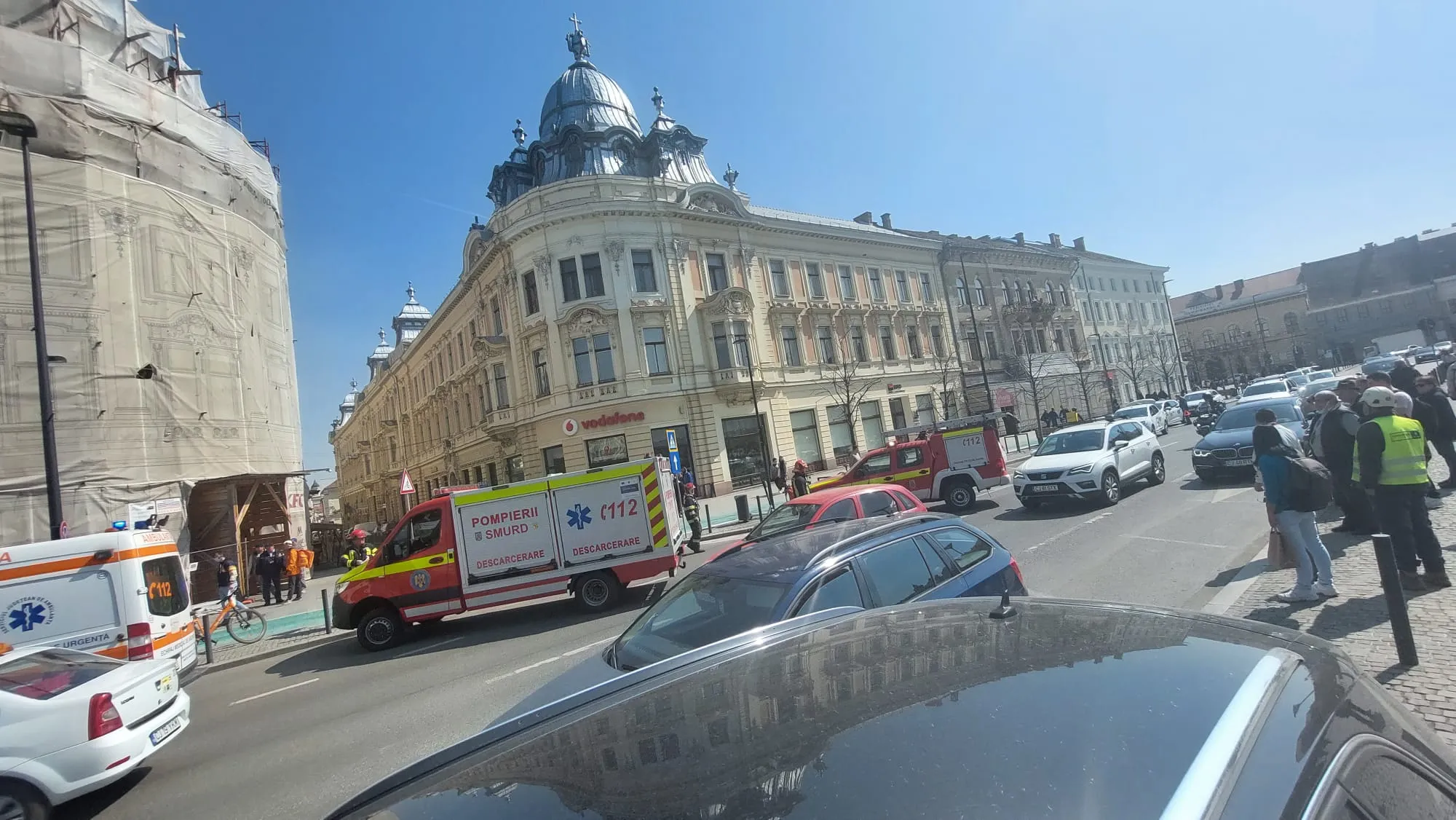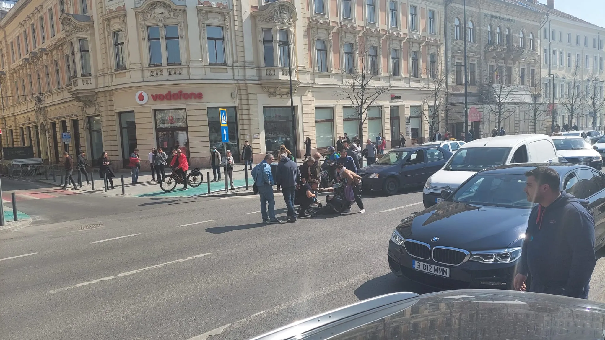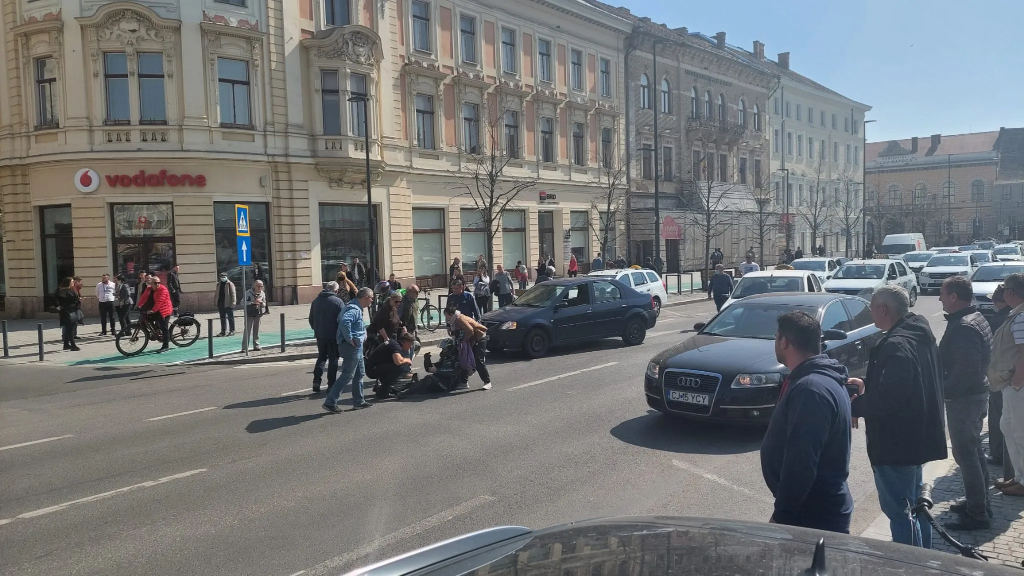Accident STRANIU în Piața Unirii, cu un biker. Motocicleta a mers singură 100 de metri și a lovit o femeie nevinovată - FOTO