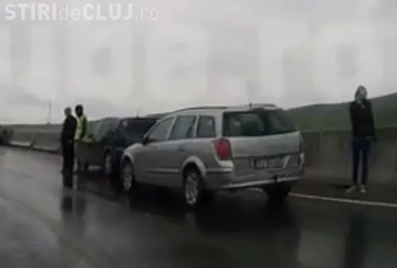Un accident între mai multe autoturisme a fost surprins de un șofer cu camera pe bord, la intrare în Turda, pe drumul E 81.