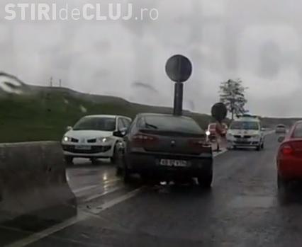 Accident la Turda filmat de un șofer cu camera pe bord: Ploaia le-a dat de furcă - VIDEO