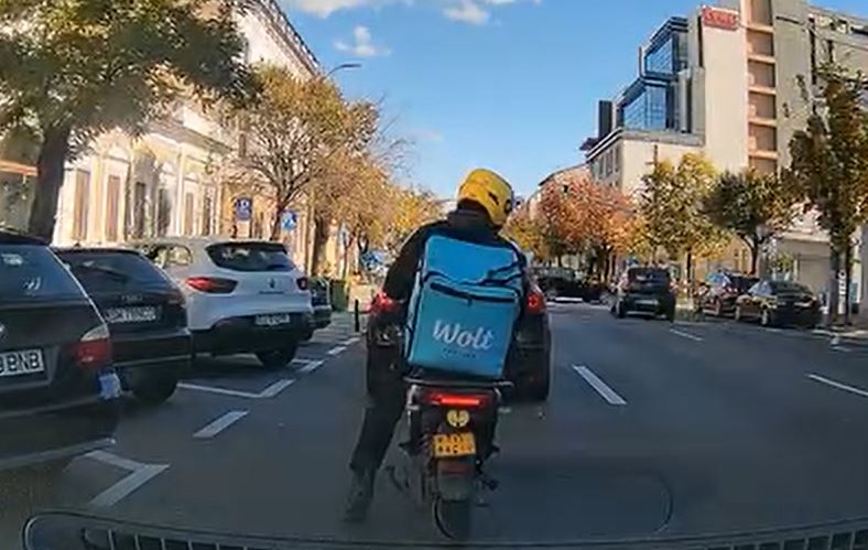 Este greu de înțeles cum a gândit șoferul Ford-ului o manevră atât de riscantă. Reacția livratorului din imagine, care s-a luat cu mâinile de cap, este sugestivă cu privire la așa un stil de condus.