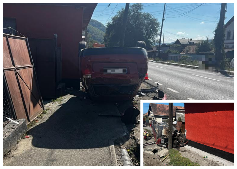 Șoferul care s-a răsturnat cu mașina în Poieni a accidentat un pieton