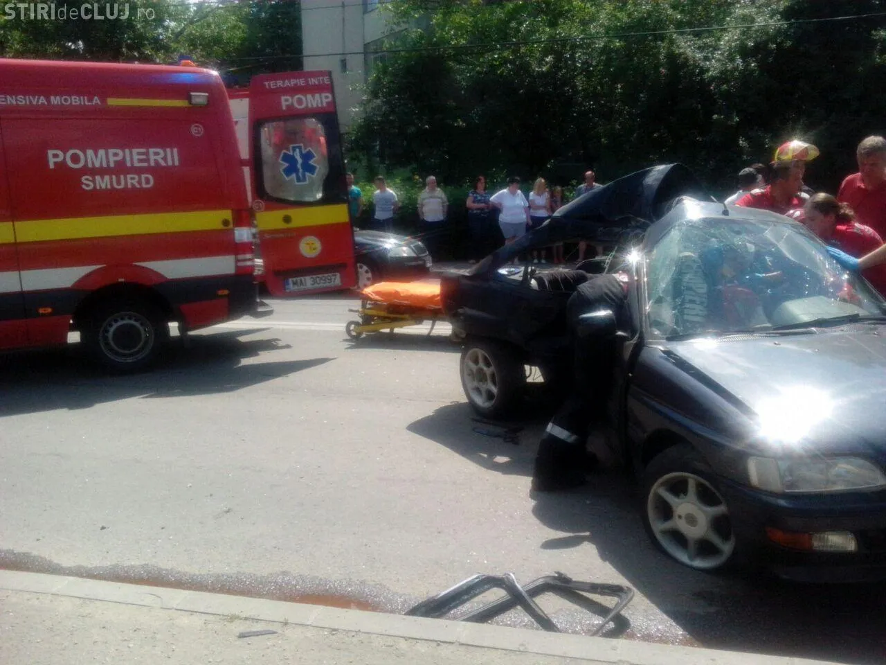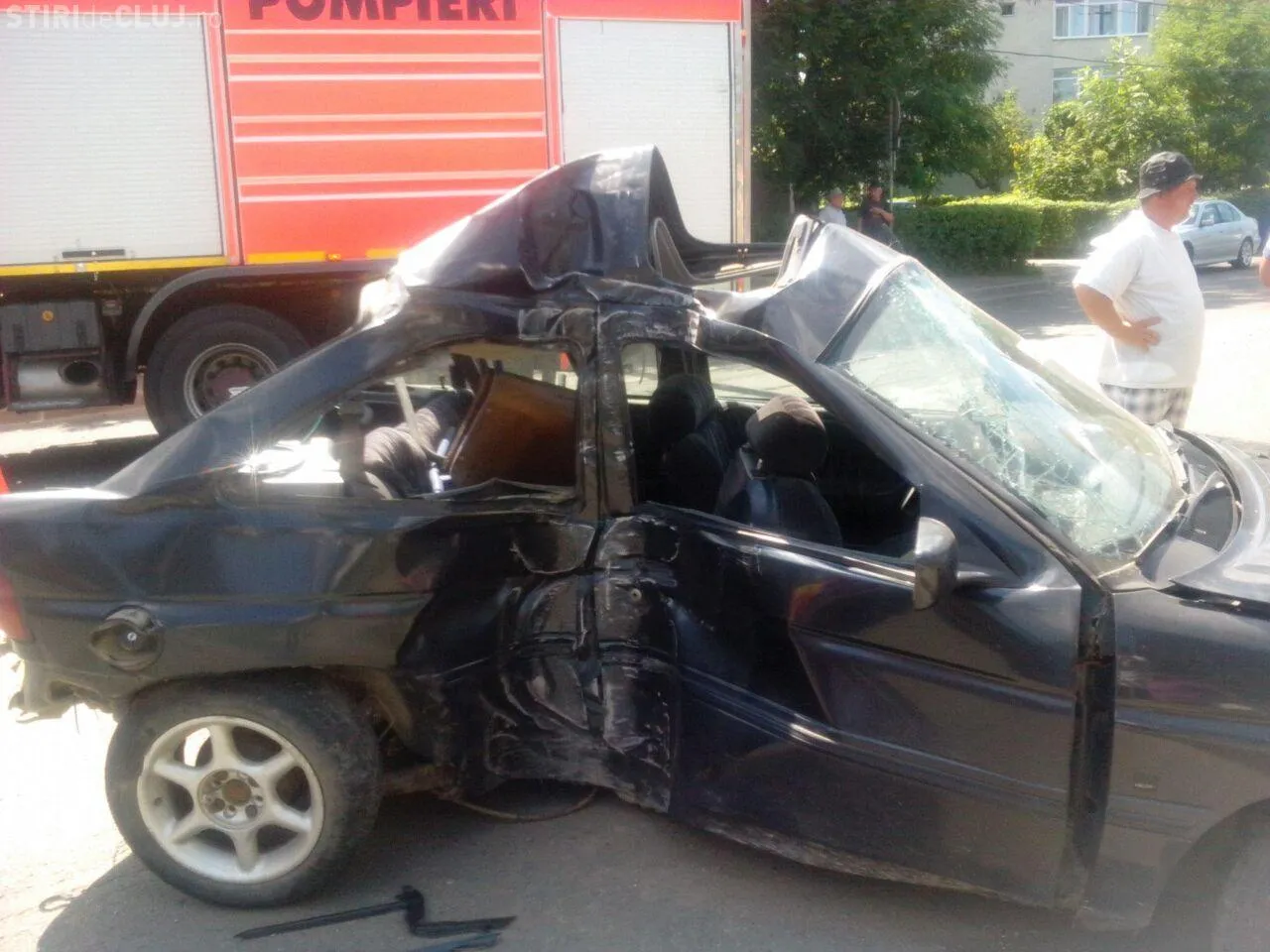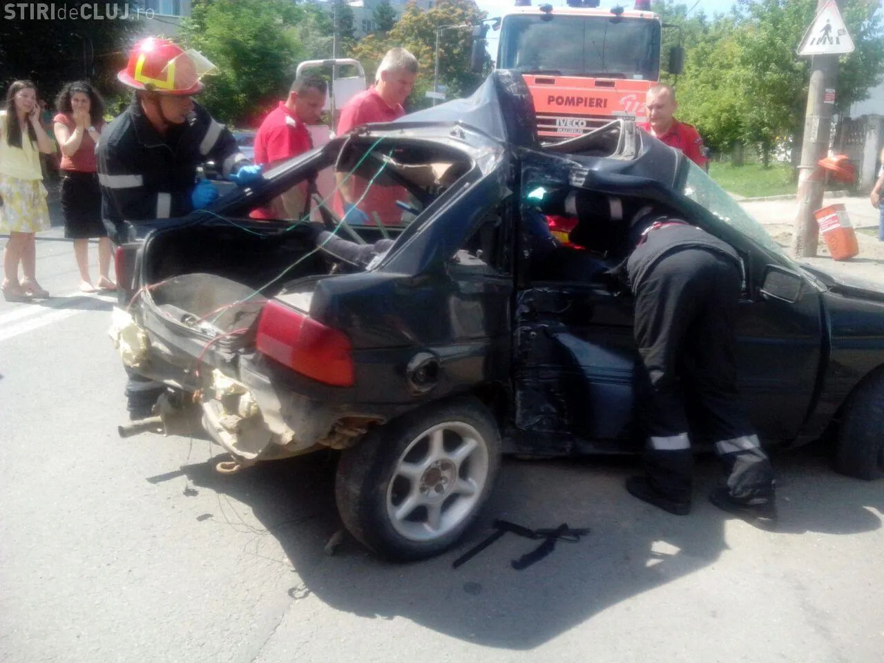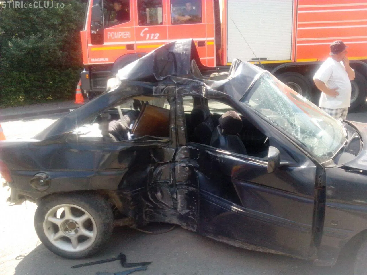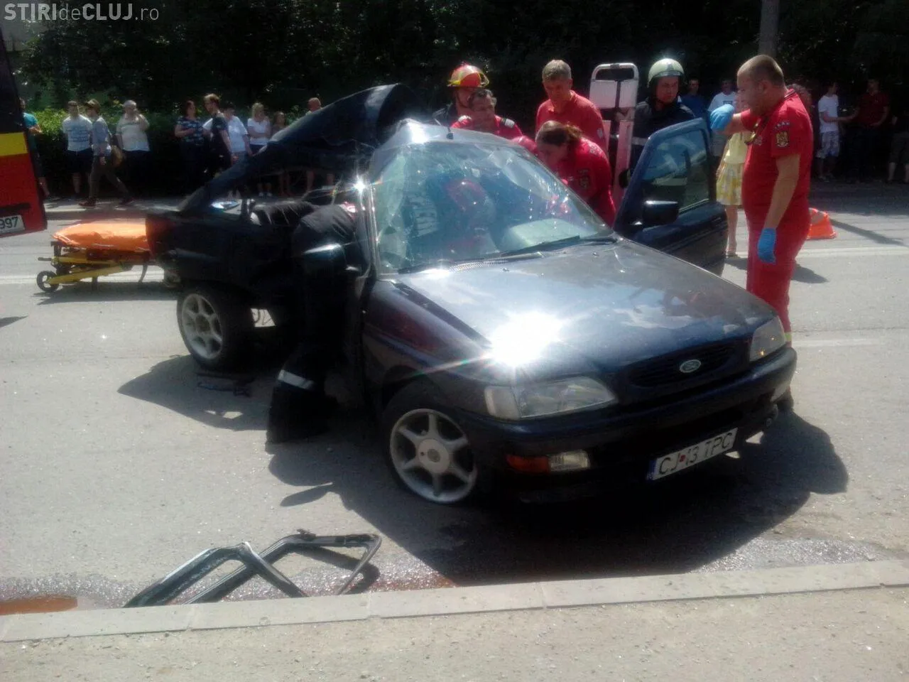 Poliția Cluj precizează că accidentul a fost cauzat de șoferul unui Ford, care nu s-a asigurat când a schimbat benzile de mers. Acesta a lovit un alt autoturism și apoi a intrat direct într-un stâlp.